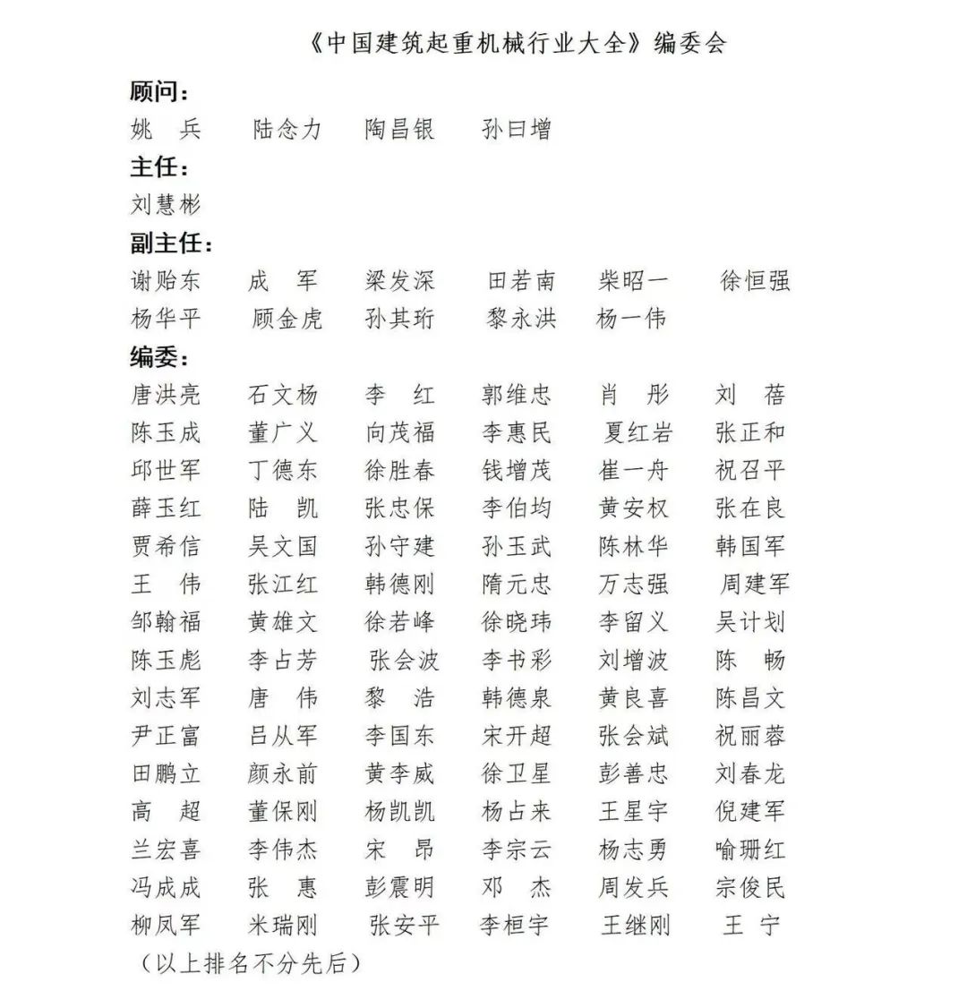 时光荏苒,新一期的《中国建筑起重机械行业大全》筹备工作已经开展,在此向有关领导、行业同仁及各位编委致以衷心的感谢!《中国建筑起重机械行业大全》涵盖了施工、制造、租赁、检测、安拆装、后市场配套件及法务。包含国内施工管理创新成果、新型起重设备、租赁公司设备及特种作业人员概况、检测新技术、配套件系列优质产品和深耕建筑行业并提供专业化服务的律师事务所,以及建筑起重机械领域专家最前沿的研究成果等。2023版《中国建筑起重机械行业大全》诚邀优秀企业参编,参编详询13581782617王主任