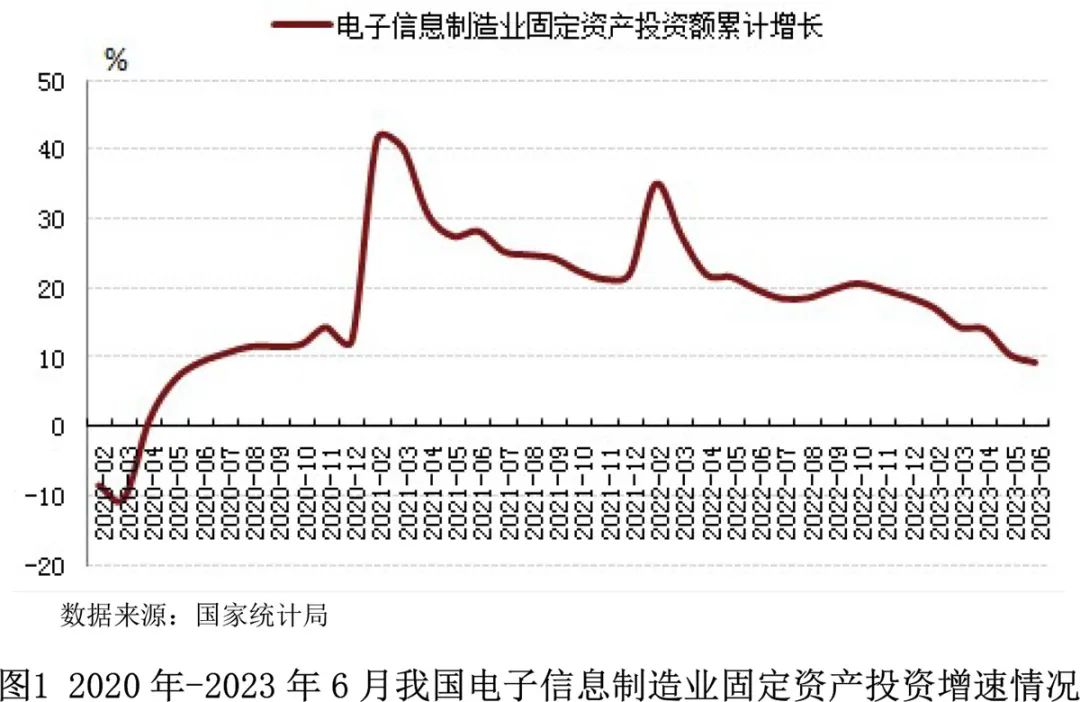 我国发展仍处于重要战略机遇期,新一代信息技术将推动我国产业加速融合发展,数字经济成为经济增长重要驱动力,以5G、数据中心、人工智能、工业互联网为主的数字基建加速布局。智能制造应用的兴起,带动了电子信息制造业的的发展。2023年1-6月份,电子信息制造业固定资产投资同比增长9.4%,比同期工业投资增速高0.5个百分点,但比高技术制造业投资增速低2.4个百分点。