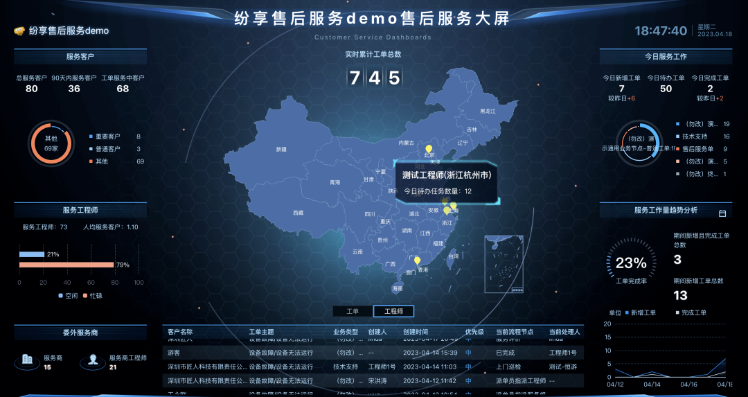 售后服务是大型设备制造企业的经营重点,直接影响客户的满意度及复购率。大族激光设备的数字化建设亮点场景之一,正是实现了售后服务的全流程系统化管理: