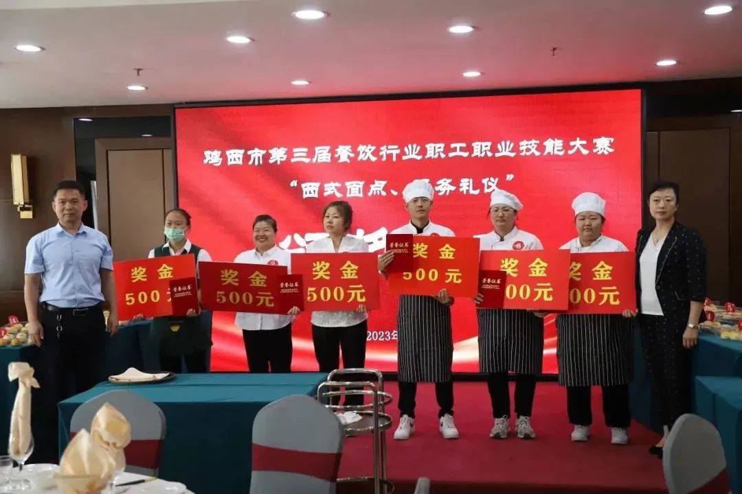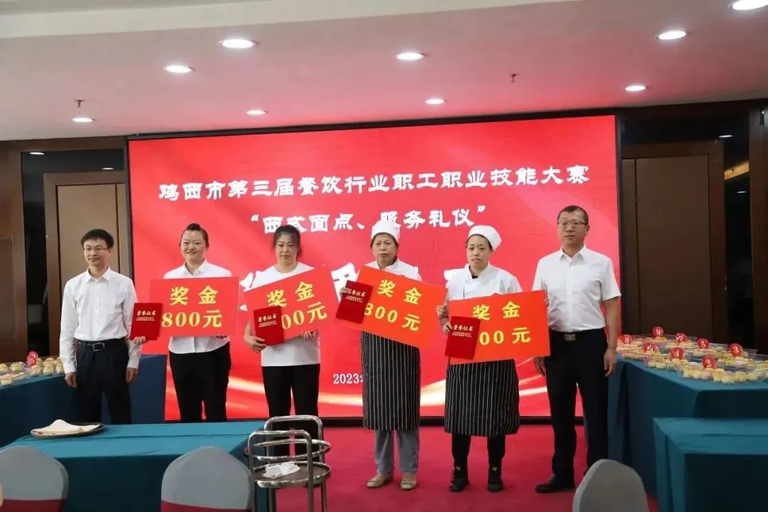 8月28日,由鸡西市总工会、鸡西市人社局、鸡西市商务局、鸡西市民政局和鸡西市消费者协会主办,鸡西市财贸工会和鸡西市餐饮协会承办的以“当好主人翁·振兴立新功”为主题的鸡西市第三届餐饮行业职工(西式面点、服务礼仪)职业技能大赛圆满收官,并举行了颁奖仪式。