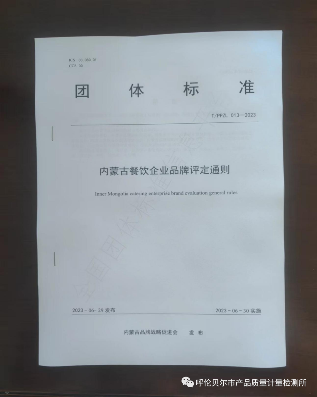 市质计所制定的团体标准《内蒙古餐饮企业品牌评定通则》发布实施