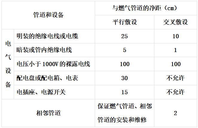 9.燃气管道与电气设备、相邻管道之间的净距不应小于: