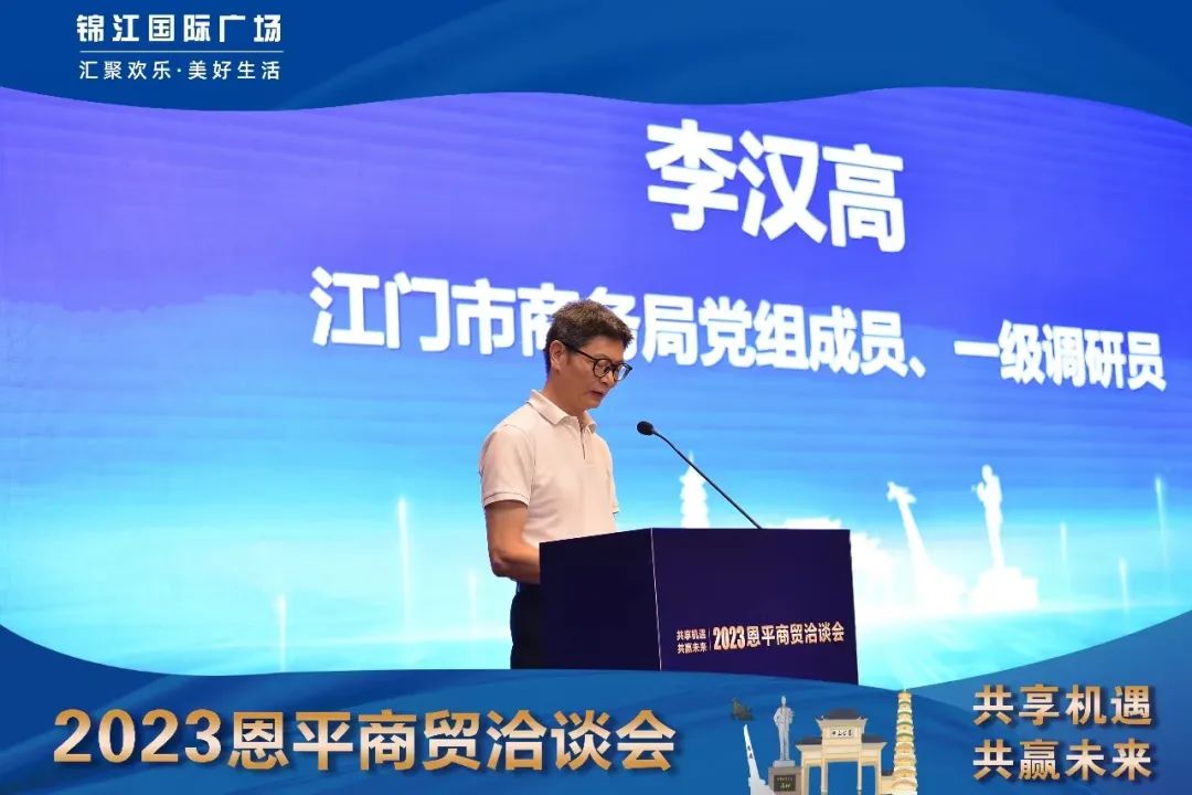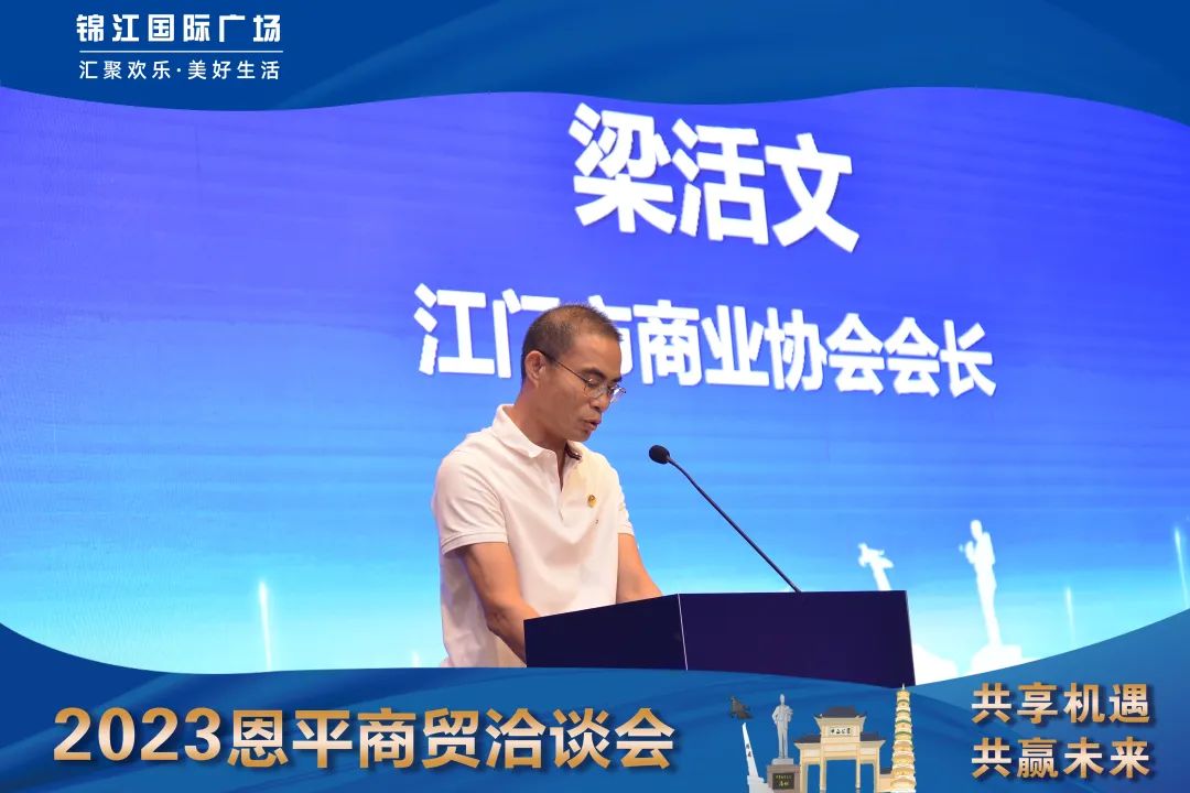 8月28日,恩平市商贸洽谈大会圆满举办!恩平市政府及市商务局领导为恩平招商进行推介和政策宣讲,我会会长梁活文代表江门商业致辞,廖雪平总经理代表恩平锦江国际项目作出高质量发展布局发言,共同为恩平商业高质量发展赋能。