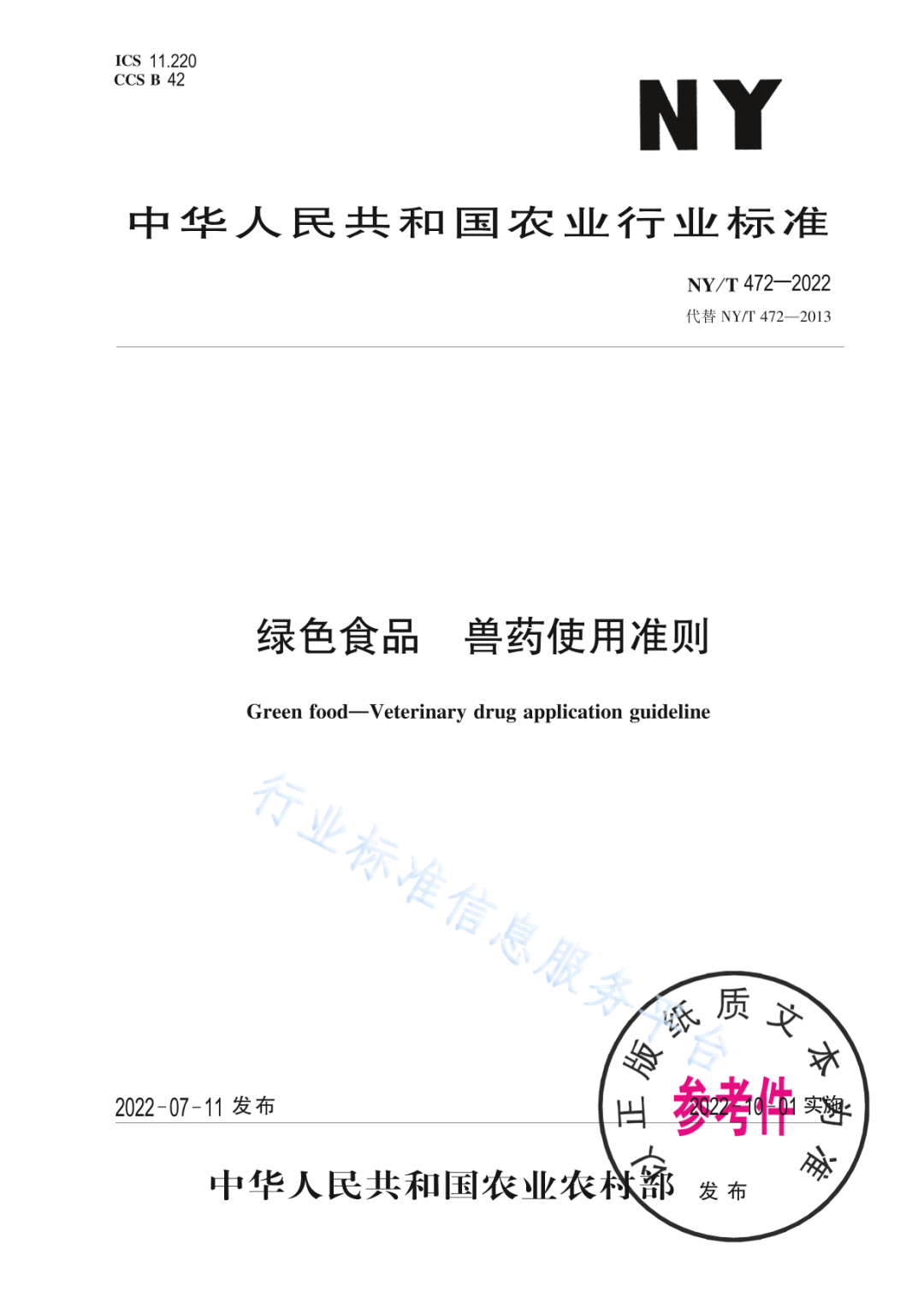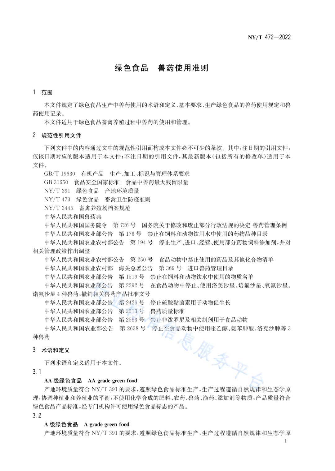 国家农业行业标准 | 绿色食品 兽药使用准则