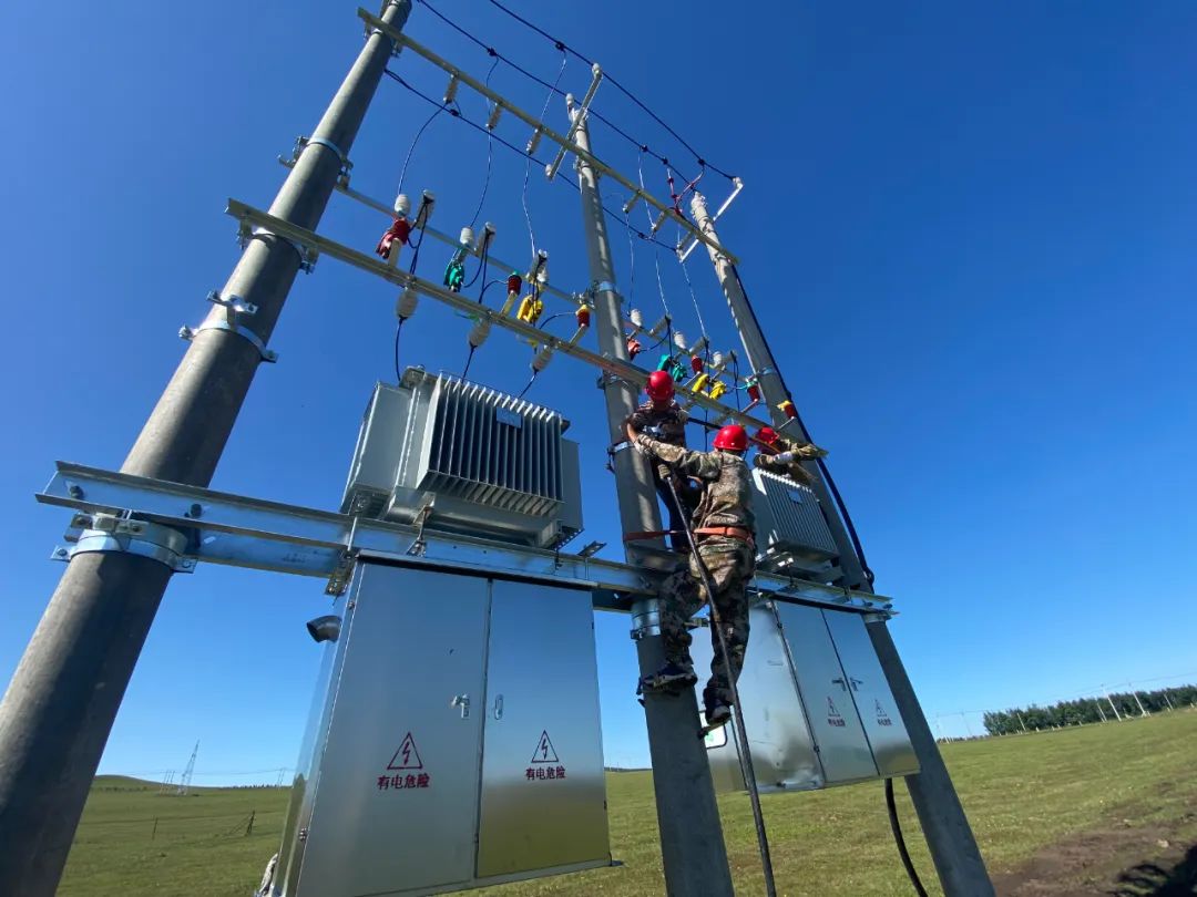 8月24日,综合服务站与陈旗电力公司联合开展新建变台正式送电工作。通电后,电力工作人员带电作业,对设备进行调试、检测。经过电力工人的不懈努力,现代化农牧业社会化服务综合体施工项目用电设施通电工作顺利完成。