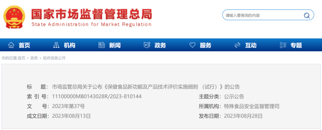 8月28日,国家市场监管总局发布《保健食品新功能及产品技术评价实施细则(试行)》(简称《实施细则》),这是改革以往保健食品功能声称框架模式的重要举措。