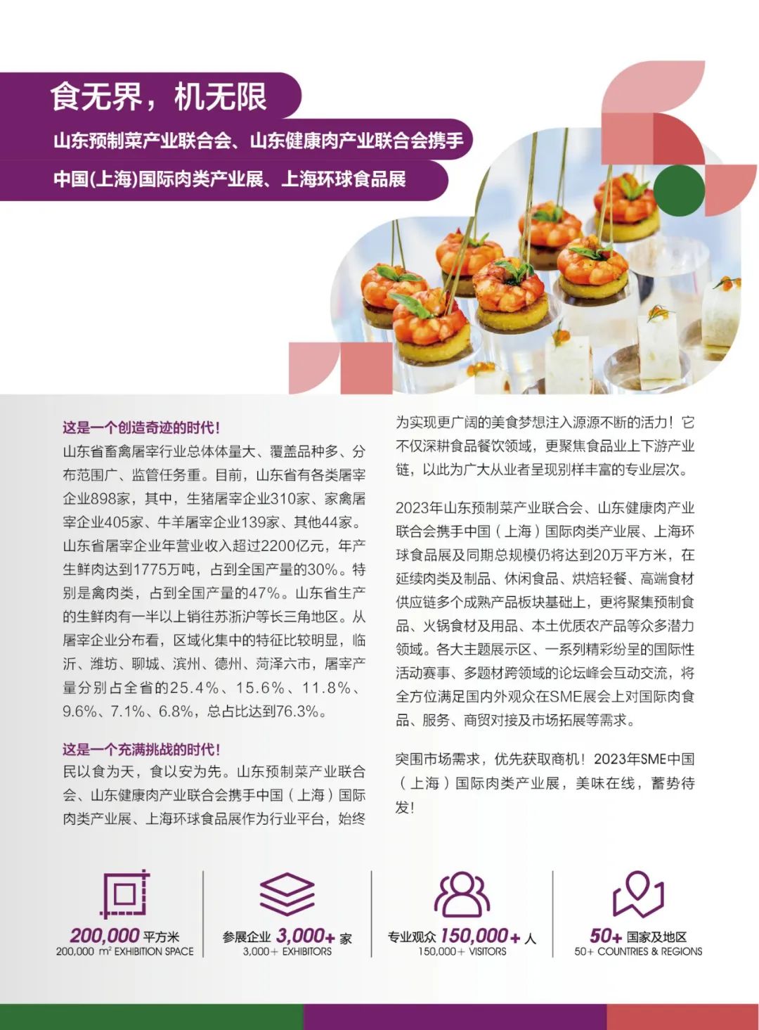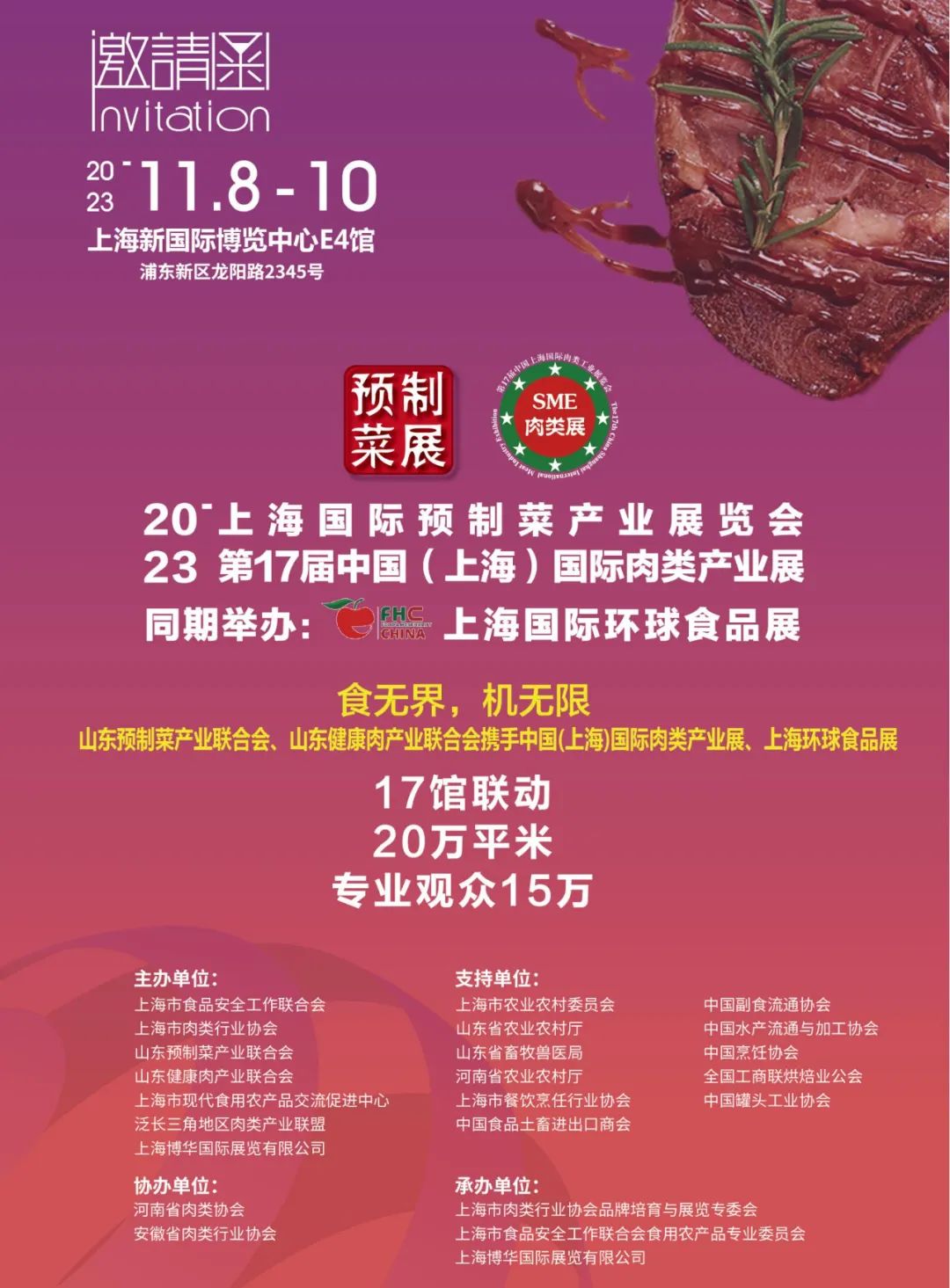 山东预制菜产业联合会与上海市肉类行业协会共办2023上海国际预制菜览会,同期举办FHC上海国际环球食品展