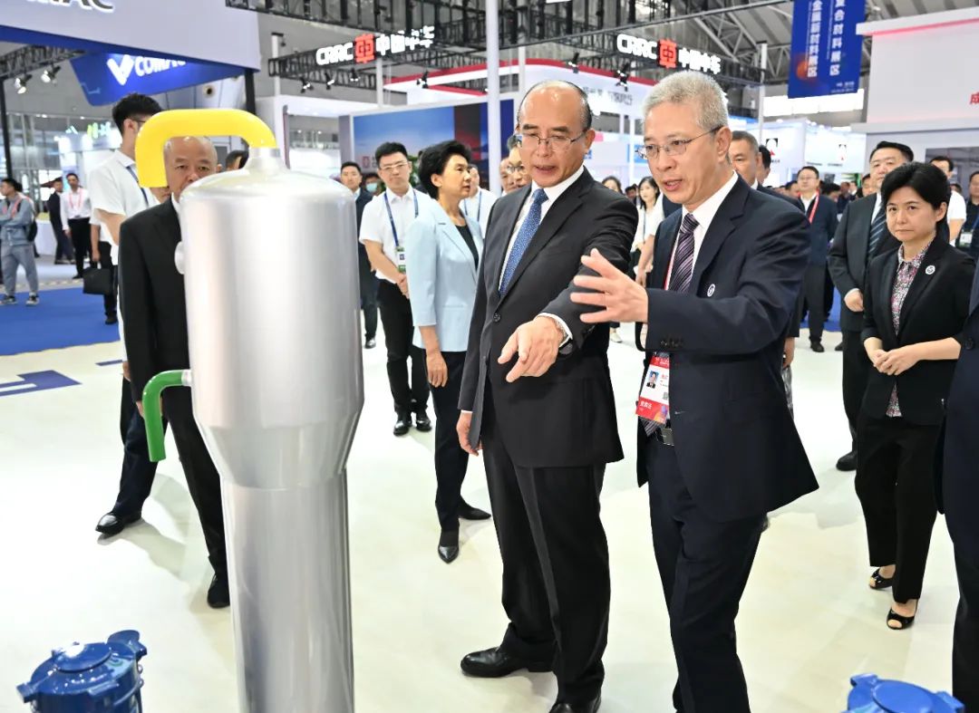 开幕式前,黑龙江省委书记许勤,省委副书记、省长梁惠玲一行来到中国一重新材料产业展区巡馆,徐鹏介绍了中国一重参展的主要装备和研制的高端新材料。许勤对中国一重取得的成绩表示肯定,希望中国一重发挥央企在国家新材料首台套研制、攻克关键核心技术“卡脖子”难题主力军作用,为龙江全面振兴全方位振兴发挥更大作用。