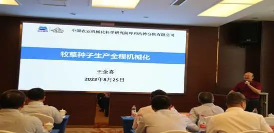 国家草原畜牧业装备工程技术研究中心王全喜博士作了《牧草种子生产全程机械化》专题报告,介绍了牧草种子生产全程机械化的整个流程。