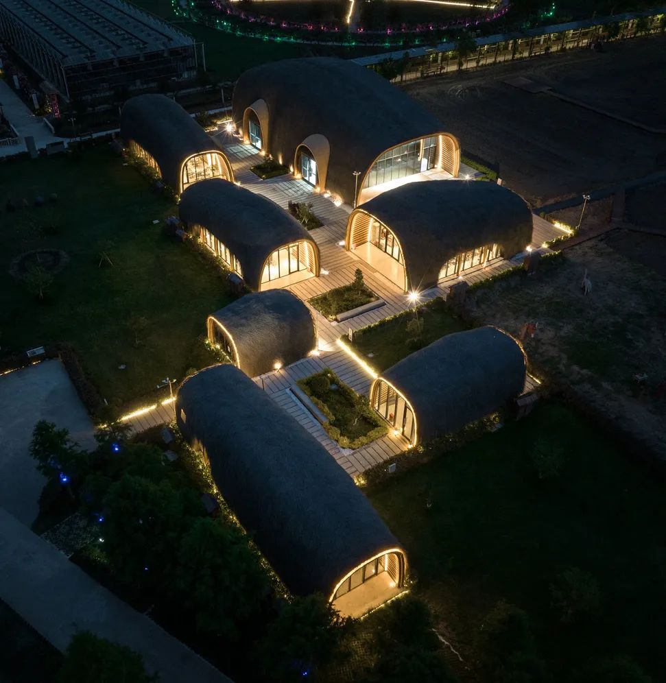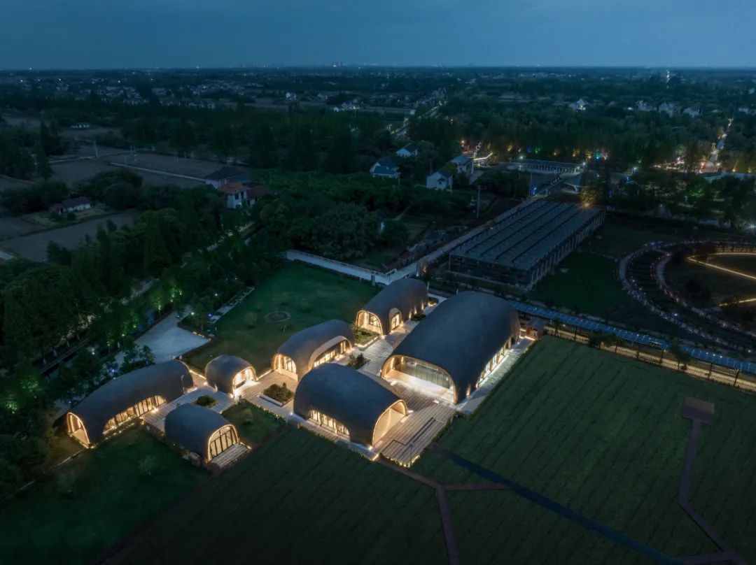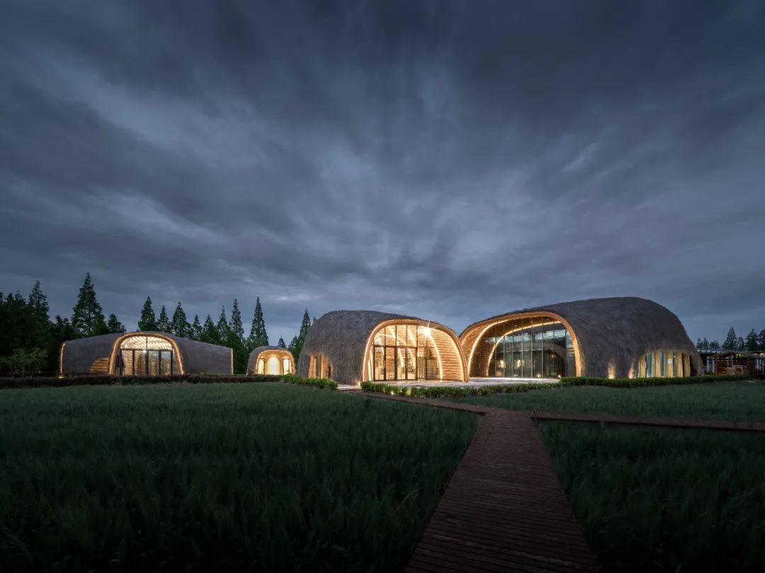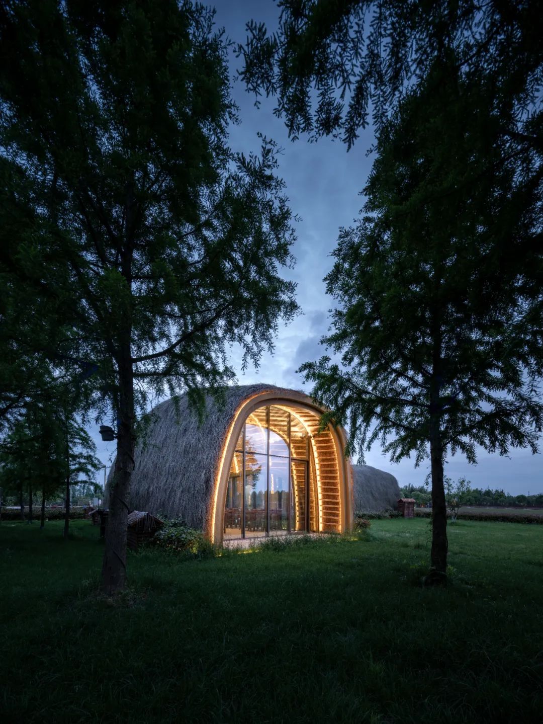 设计提取崇明历史上的“环洞舍”原型,提出“上禾洞舍”理念,试图复原日出而作日落而熄的田间印象,在乡村振兴的大背景下唤起人们对田野间的原始记忆,很好地体现在地设计。