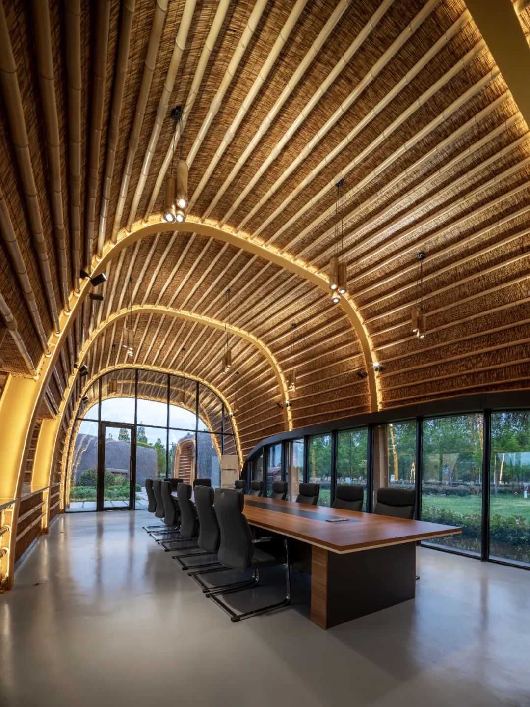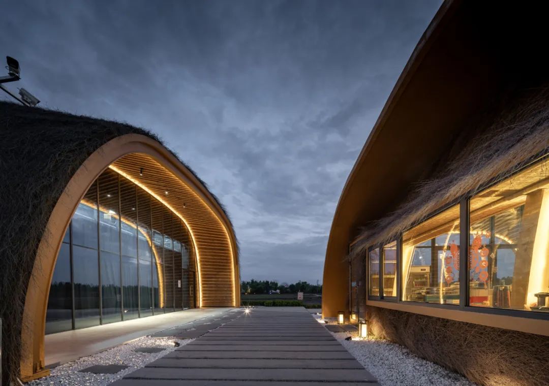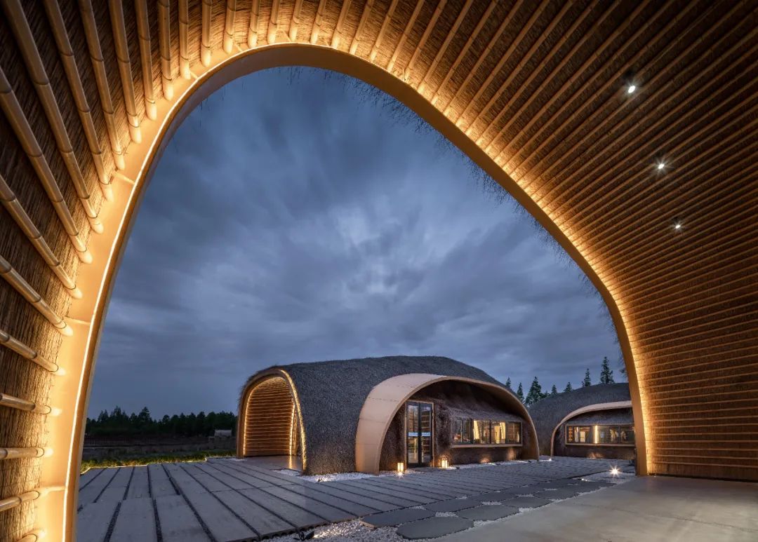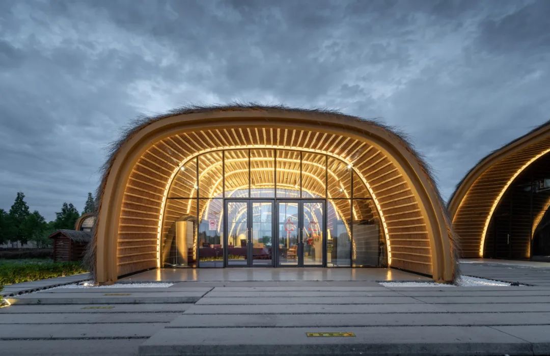 设计提取崇明历史上的“环洞舍”原型,提出“上禾洞舍”理念,试图复原日出而作日落而熄的田间印象,在乡村振兴的大背景下唤起人们对田野间的原始记忆,很好地体现在地设计。
