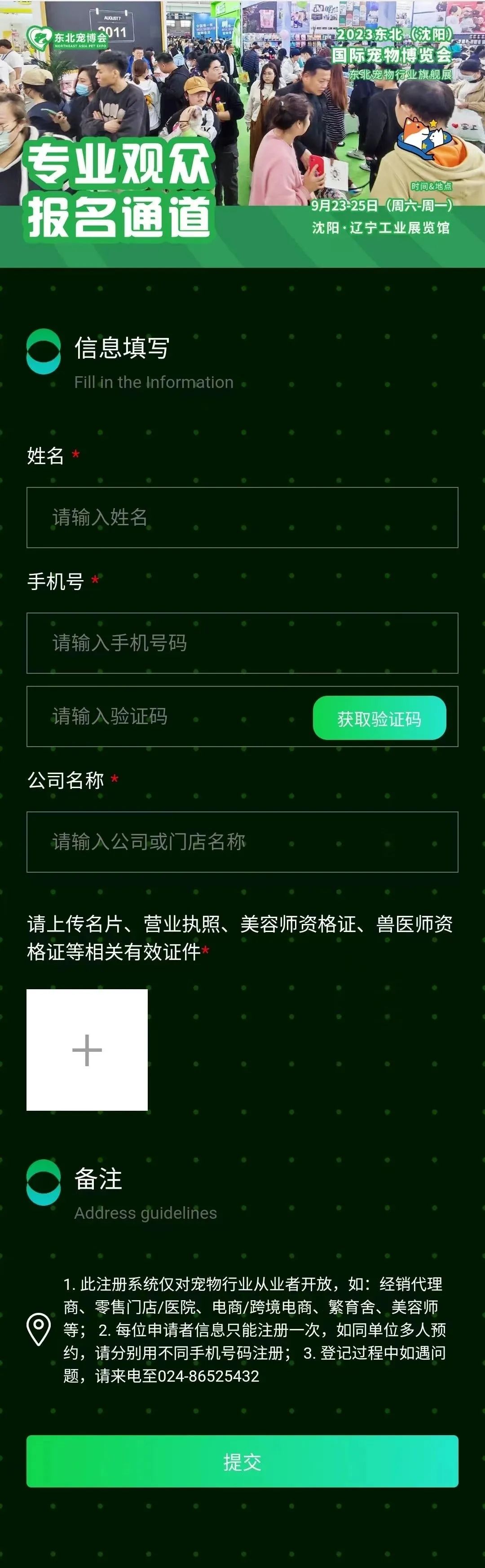 进入报名通道后,填写姓名、手机、公司名称、并上传相关证件。审核通过后可通过短信现场兑换专业观众参观证。