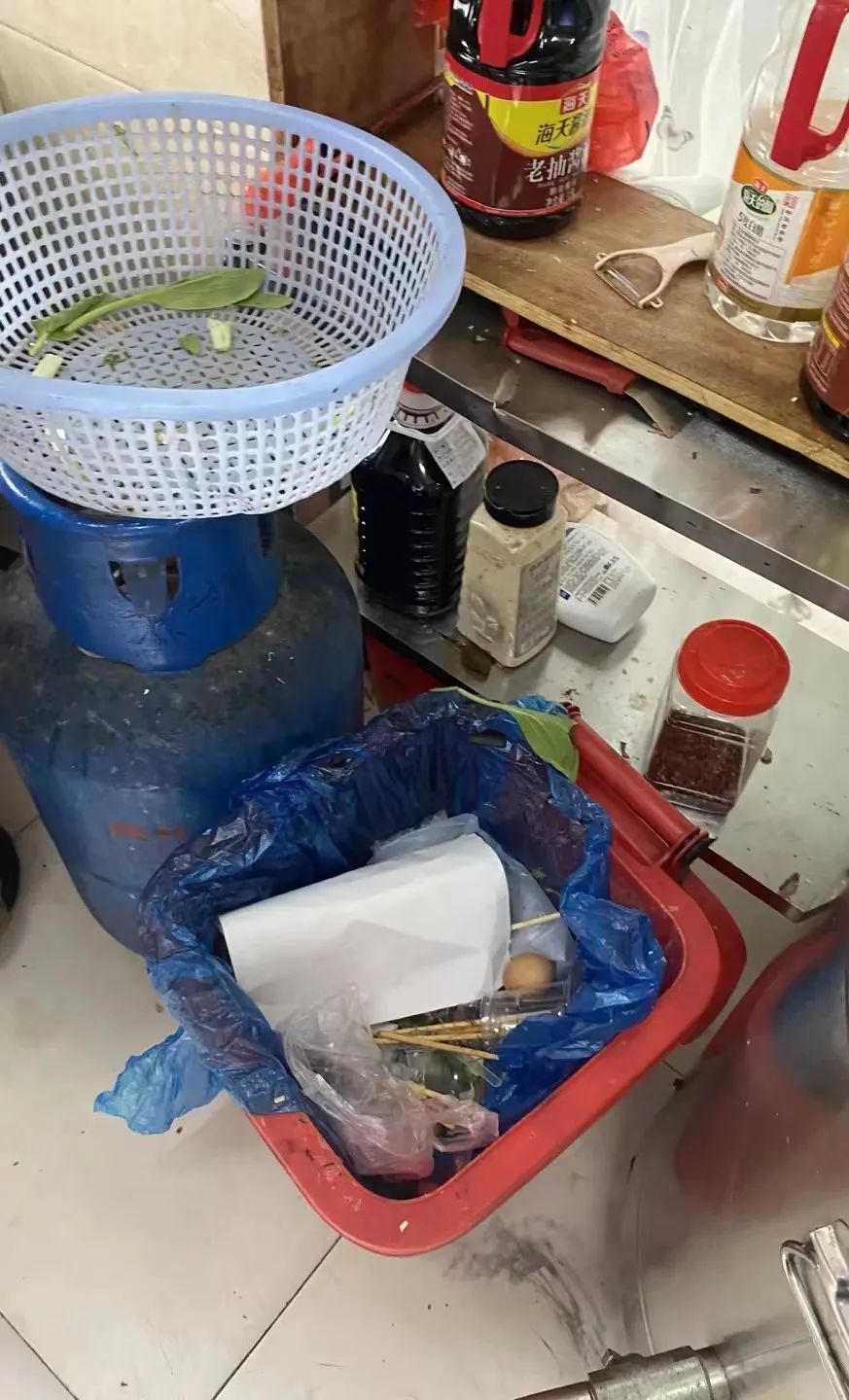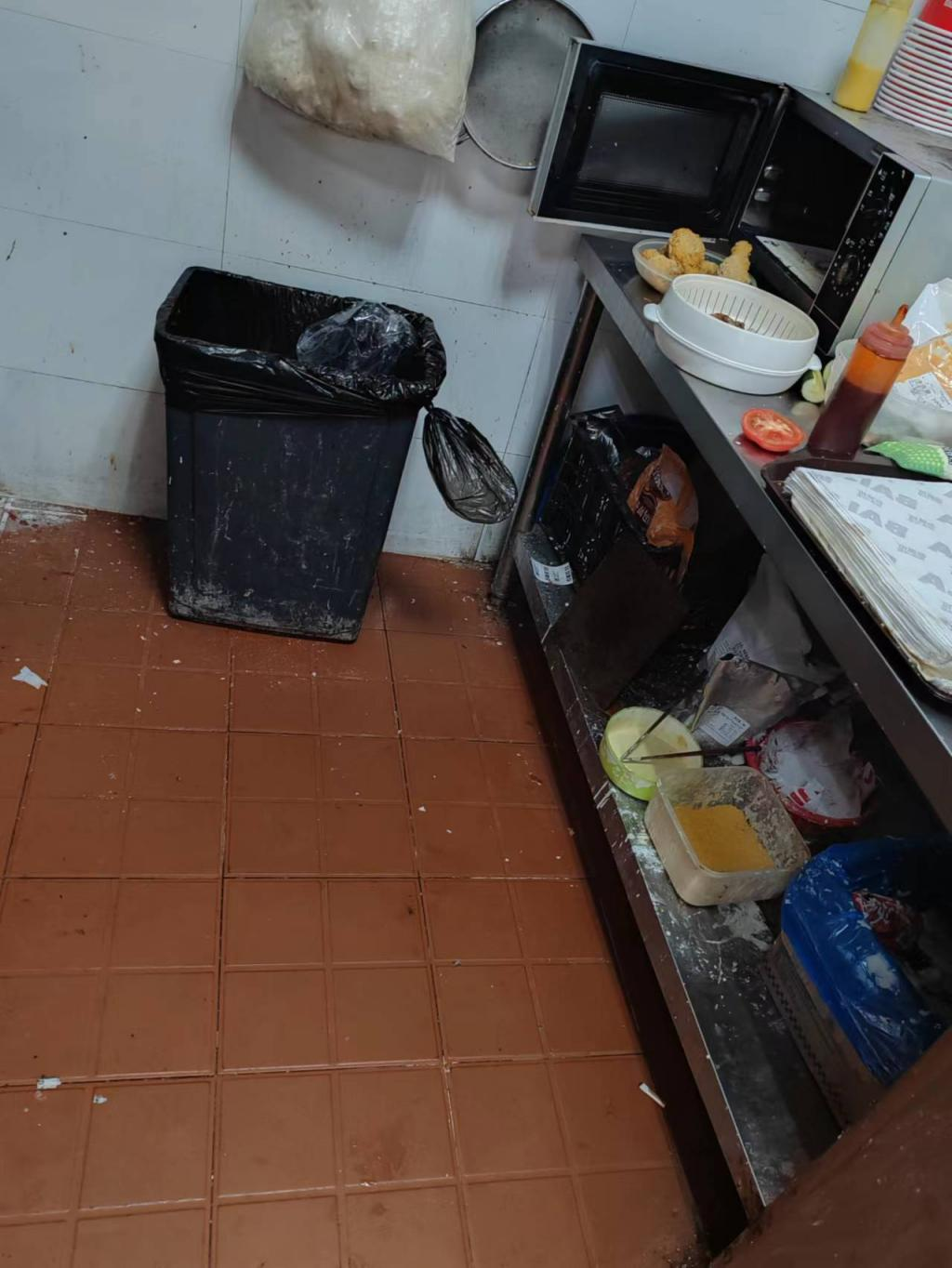 后厨有卫生死角,垃圾桶未及时加盖