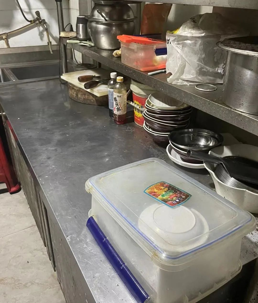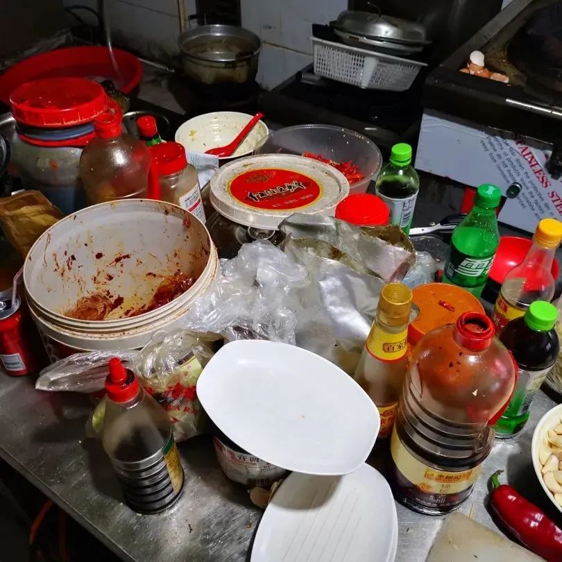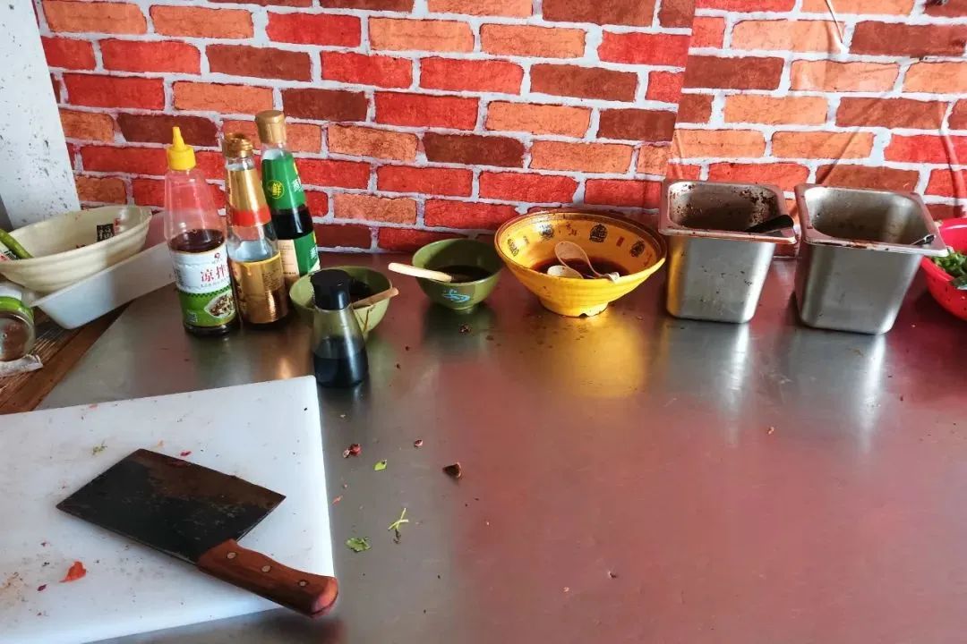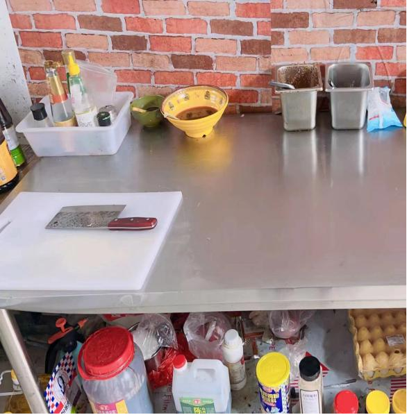 整改情况:操作台面清理干净,厨房工具摆放有序;水池已张贴标识;后厨及经营场所卫生已清理。