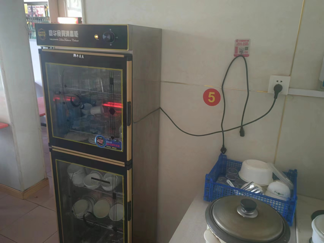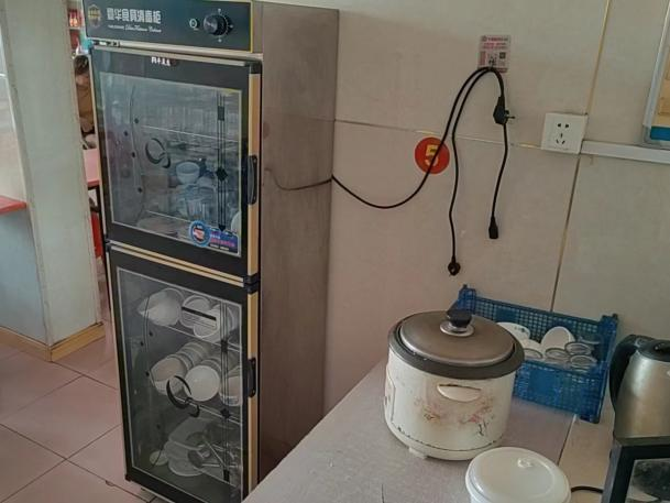 整改情况:已清理消毒柜,保持消毒柜正常使用;已对后厨卫生进行清理。