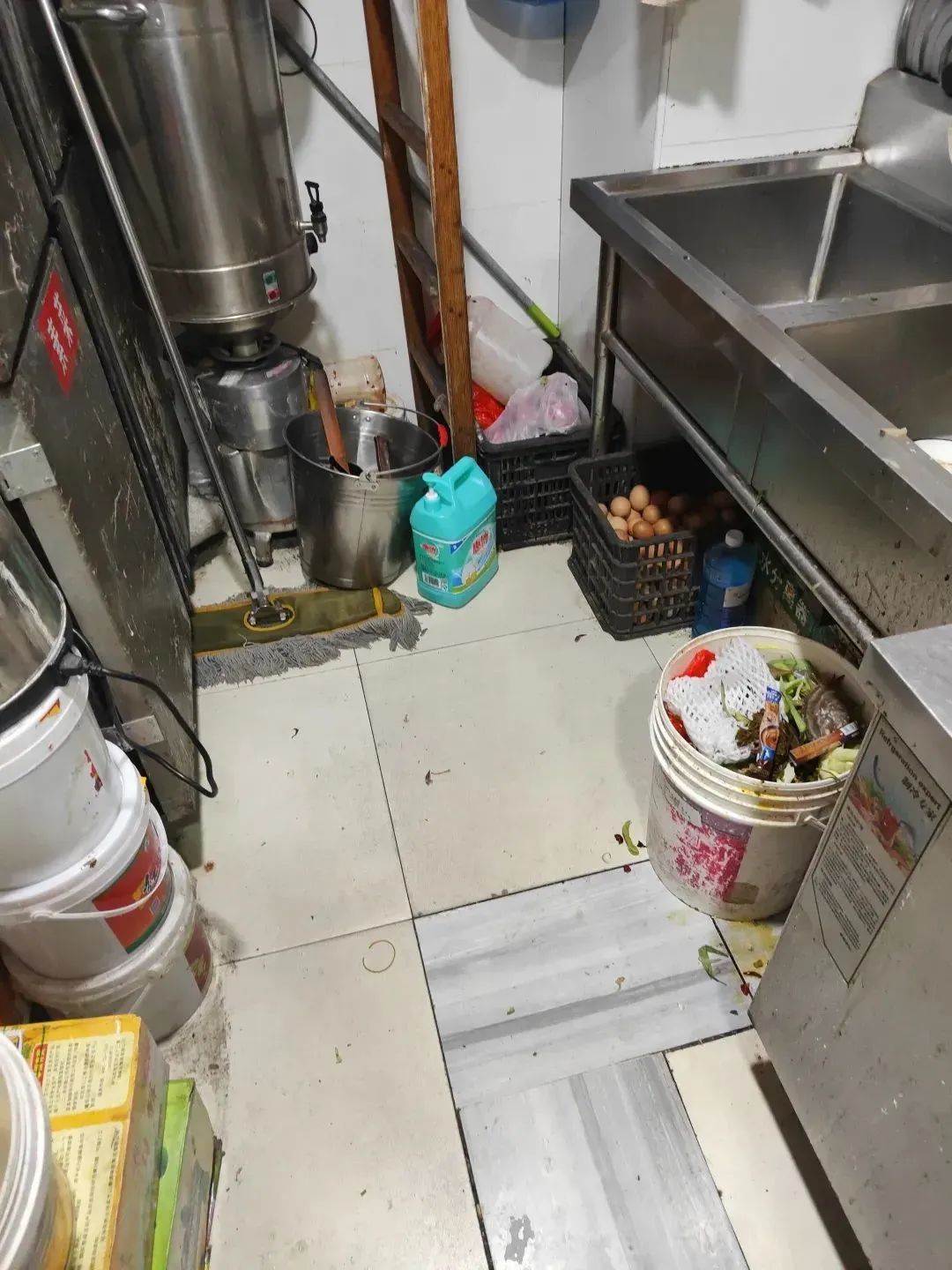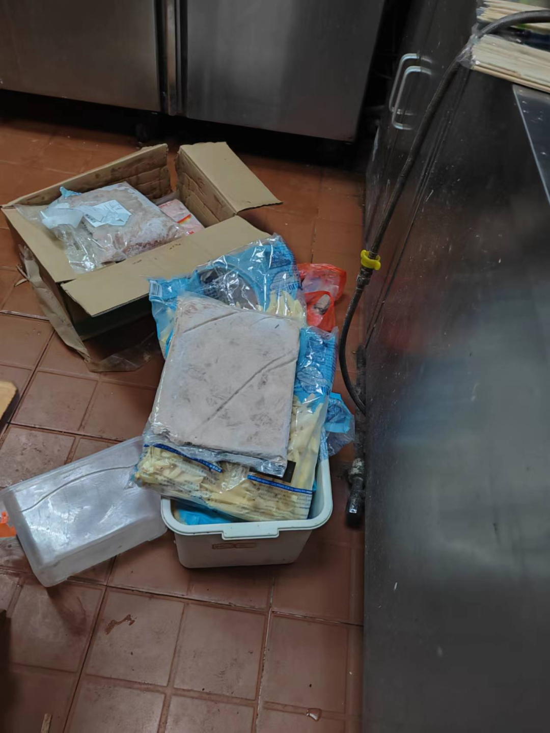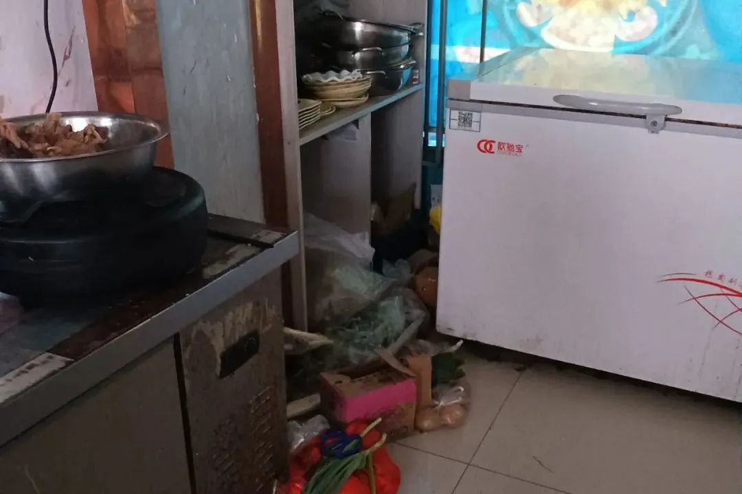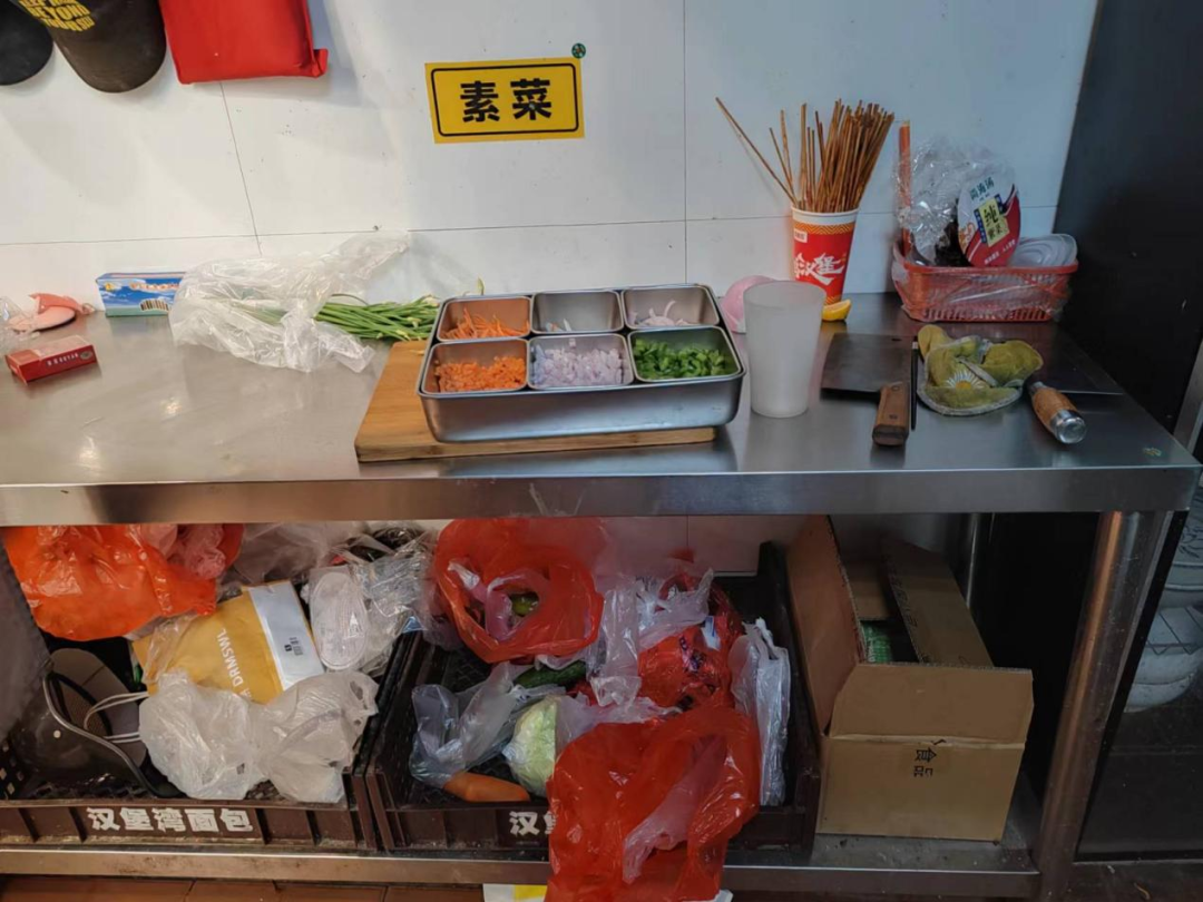 后厨有卫生死角,食品着地存放