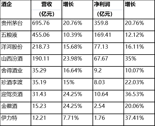梳理已发布的业绩公告可以发现,头部酒企的地位依旧无可撼动,茅台、五粮液依然占据排行榜的前列。