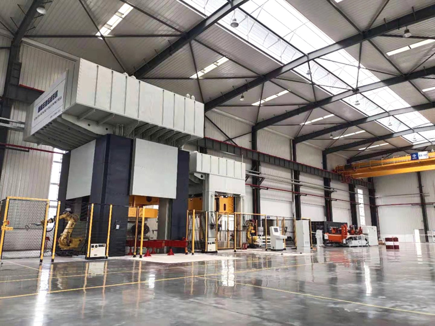 重庆江东机械有限责任公司是集液压机、轻量化成形技术、轻量化零部件、冷热冲压模具、金属铸件等研发、生产、销售和服务于一体的综合性锻压装备和零部件制造企业。其中,公司研发液压机及生产线具有先进的自动化、智能化、柔性化,同时,江东机械能够为客户提供各种金属及非金属液压成形成套装备及成形技术一体化整体解决方案,尤其在汽车轻量化零部件精密成形技术和全自动成套成线装备研发领域,形成核心关键技术和竞争优势。公司目前能够设计生产30个系列,500余个品种液压机以及生产线成套自动装备,产品规格从50吨—10000吨,广泛应用于航空航天、新能源、汽车制造、军工装备、船舶运输、轨道交通、石油化工、轻工家电、新材料等领域。1.超高强钢(铝)高速热冲压生产线