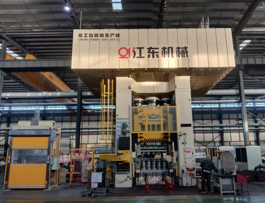 多工位全自动挤压/锻造生产线由上料机构、输送与检测分选装置、滑道及翻转机构、多工位挤压液压机、多工位模具、换模机械手、升降装置、搬运手臂、下料机器人等组成;生产线主要适用于金属轴类零件的冷、温、热挤压成形工艺。5.超塑成形液压机