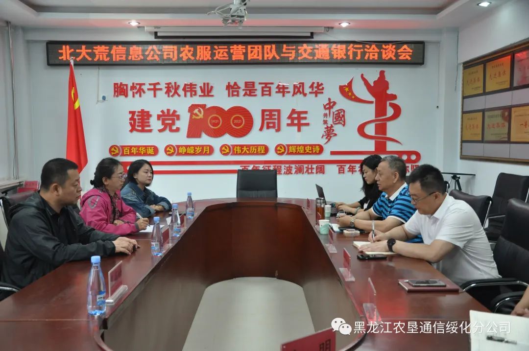为进一步加强和推进土地承包系统农贷工作实施,8月30日,北大荒信息公司土地承包系统运营团队负责人朱少华一行来到农垦通信绥化分公司分别与属地银行进行面对面交流洽谈。农垦通信绥化分公司总经理李勇、土地承包系统专班成员陪同调研。