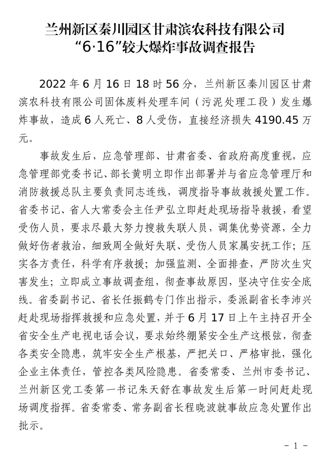 【事故调查报告】兰州新区秦川园区甘肃滨农科技有限公司“6·16”较大爆炸事故