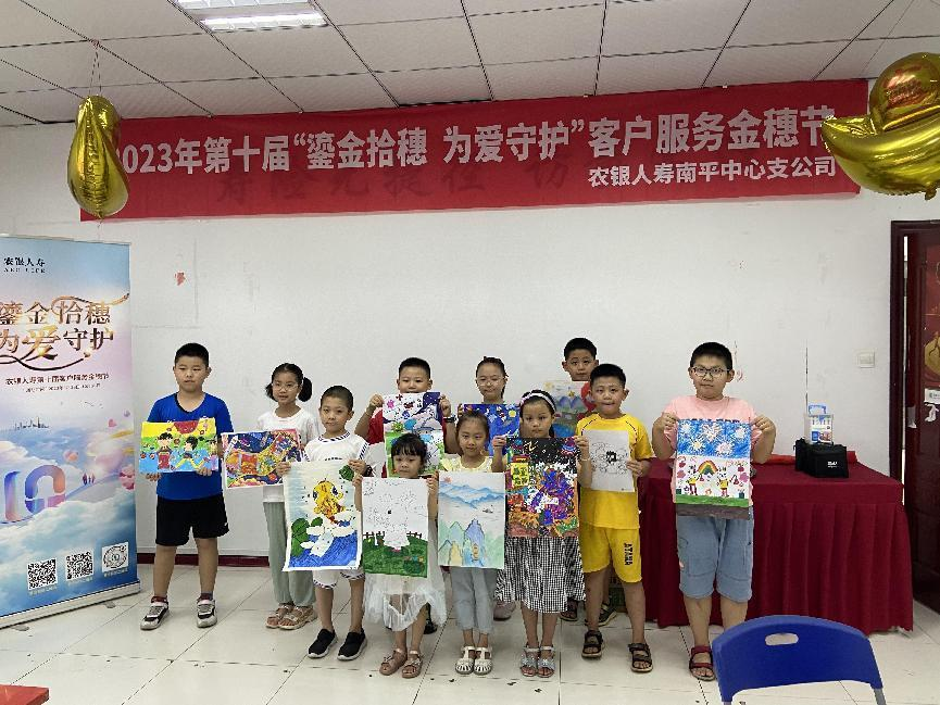 为践行以人民为中心发展理念,积极落实数字化服务转型、绿色金融发展,提升公司服务品牌影响力,在农银人寿成立十周年之际,通过举办2023年第十届客户服务金穗节系列主题活动,农银人寿南平中心支公司于2023年8月28日开展2023年第十届客户服务金穗节系列活动之——“妙笔丹青绘十年”悦享少儿绘画比赛。本次活动主题“鎏金拾穗 为爱守护”,以“十年感恩回馈,共享美好新生活”为活动宗旨,引导小朋友关注农银人寿十年成长历程。小朋友们精心构思,充分发挥想象力,把自己眼中的农银十年通过五彩画笔描绘出来,绘成一幅幅构图饱满、生动有趣的图画,表达小画家们对多彩农银人寿的美好祝福。