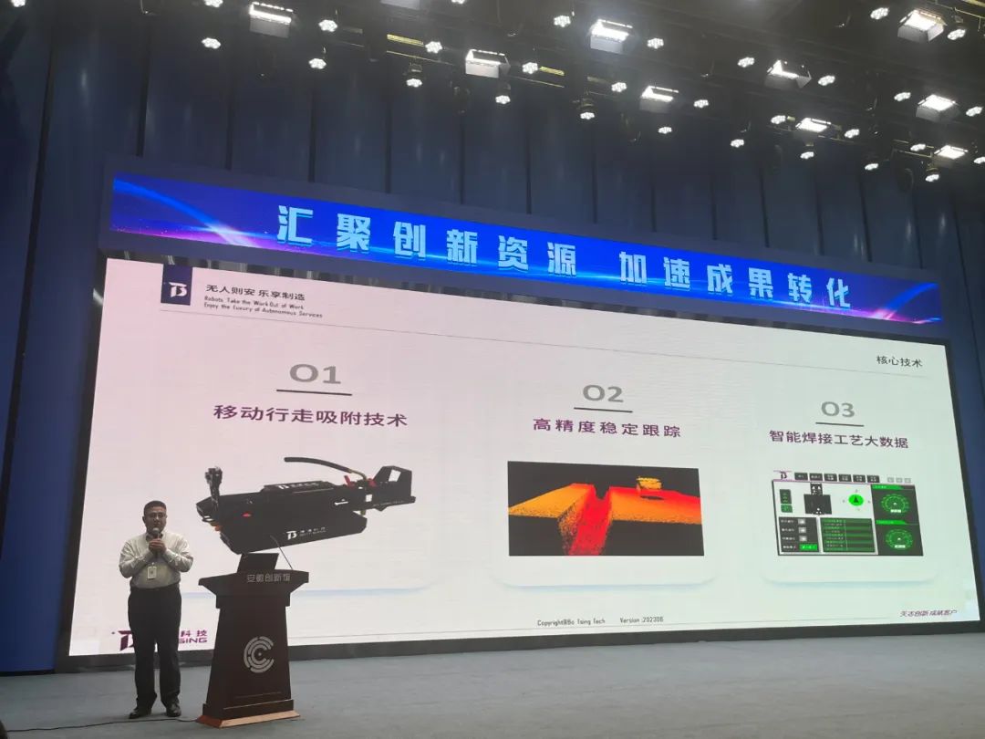 2023年8月27日,博清科技受邀参加了备受瞩目的安徽先进技术专场路演暨科技大市场8月科技成果转化交易会,展示最新研发的无轨导全位置爬行焊接机器人。凭借独特的设计和卓越的性能,此技术创新成果在展示会现场引起广泛的关注。