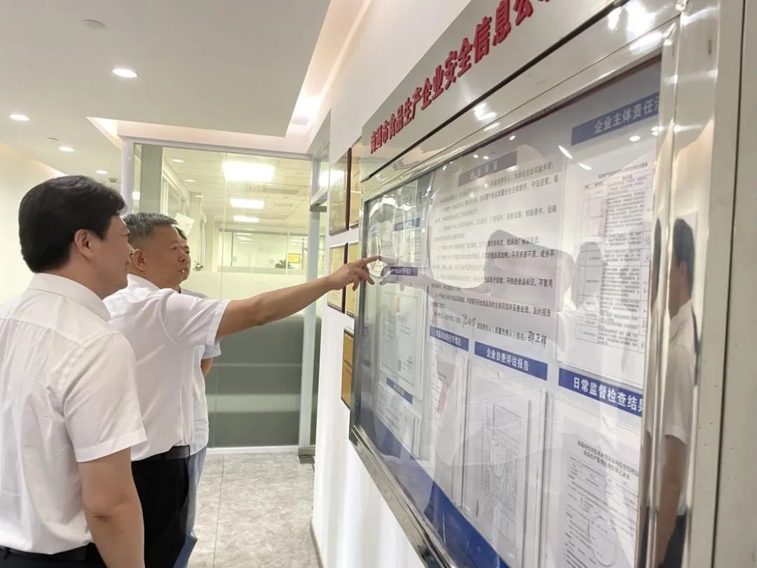 为进一步推进食品安全“两个责任”落实落细,8月30日,南通开发区党工委委员、管委会副主任王伟带队对食品生产企业开展食品安全现场督导工作。区食安办主任、市场监管局局长王瑞涛,区食安办专职副主任、市场监管局党组成员邵进陪同检查。