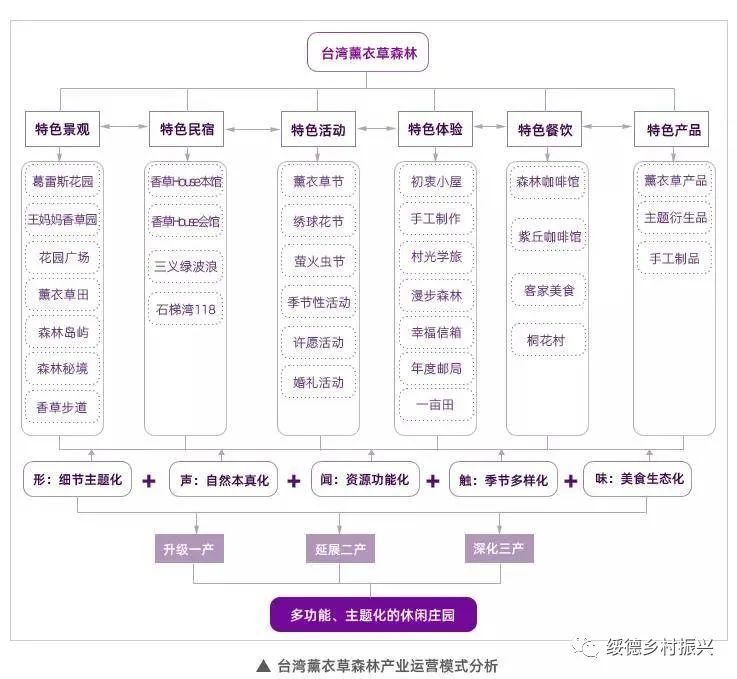 同样,最早学习日本的台湾地区,其农文旅项目的发展更是青出于蓝,更加“小而精、小而美”,各类主题明确的农文旅项目比比皆是。例如薰衣草森林、三星葱、梅子梦工厂等,主题鲜明的农场动则也是上亿甚至几十亿台币的产值。
