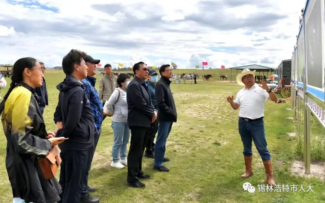 调研组一行先后来到南郊街道机车小镇、草原上的朋友露营地,马都旅游核心区、锡林好礼文创店、白银库伦火山地质公园和白音锡勒玩马俱乐部,通过实地查看、听取介绍、互动交流等方式,详细了解各景区、景点建设经营情况。