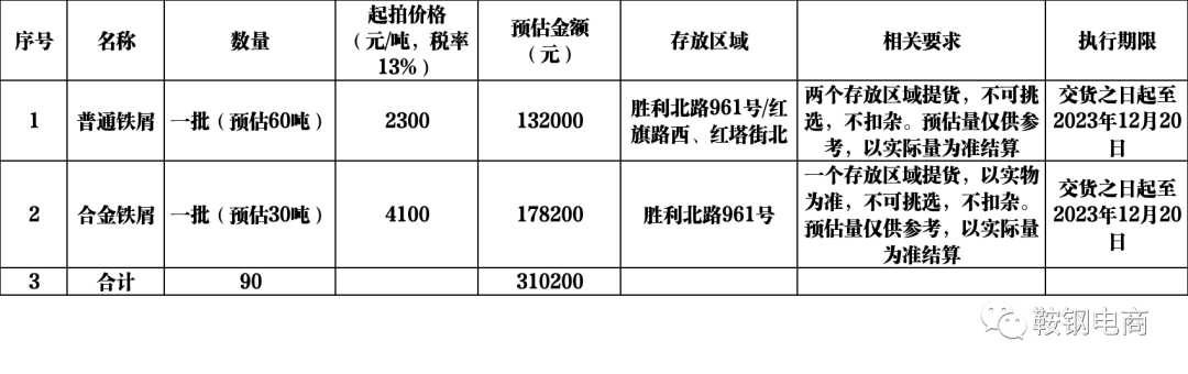 鞍钢实业集团冶金机械有限公司于2023年9月5日在德邻循环平台(网址:http://xh.dllg56.com)进行铁屑的网络竞价销售,现将具体事项公告如下:
