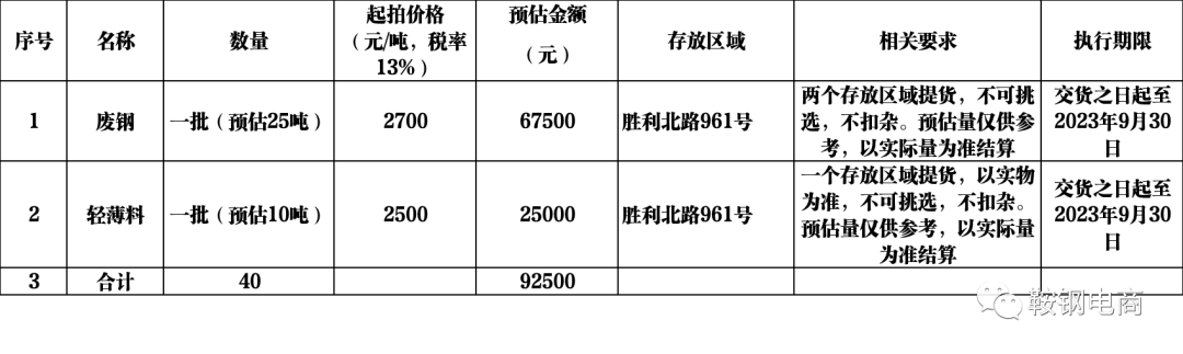 ①本次出售的废旧物资整体打包对外出售。