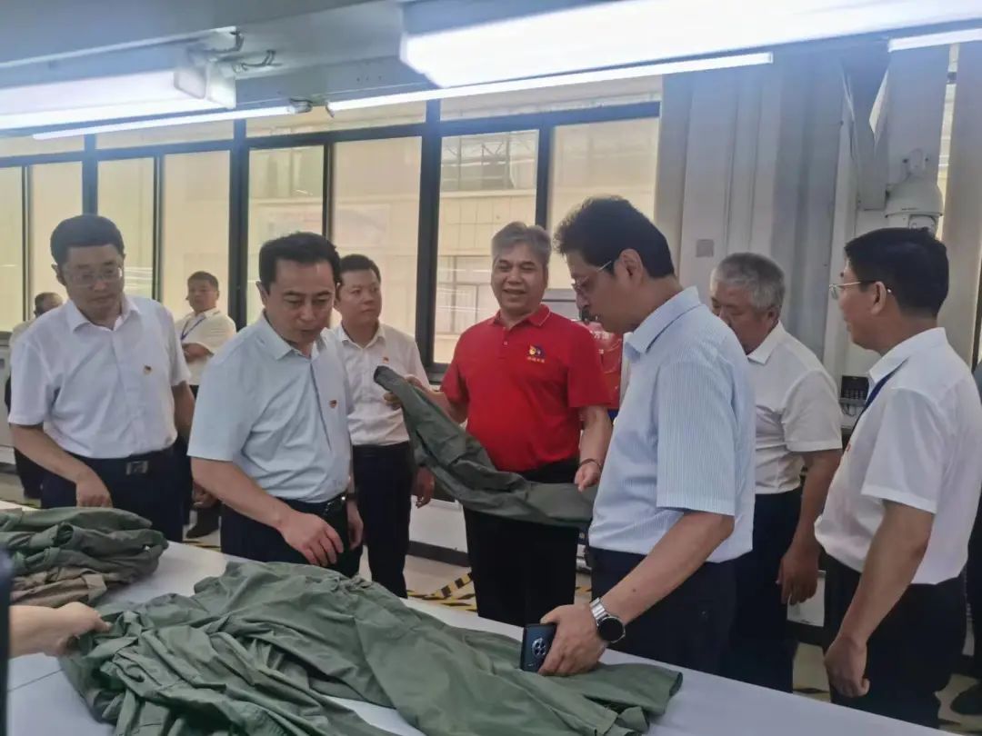 8月30日,济宁市个体私营企业党建工作现场会与会领导在省市场监管局个体私营经济发展促进处三级调研员贾祥峰,济宁市市场监管局党组书记、局长周庆华带领下到军屯乡重点企业华城百灵服饰有限公司观摩指导工作。县委常委、政法委书记付天平,县市场监管局局长陈圣渠,县委组织部副部长王冲,乡党委书记韦可等陪同调研。