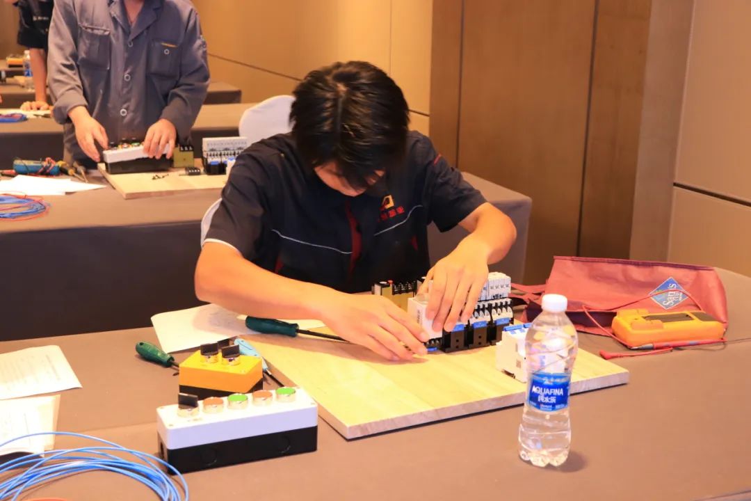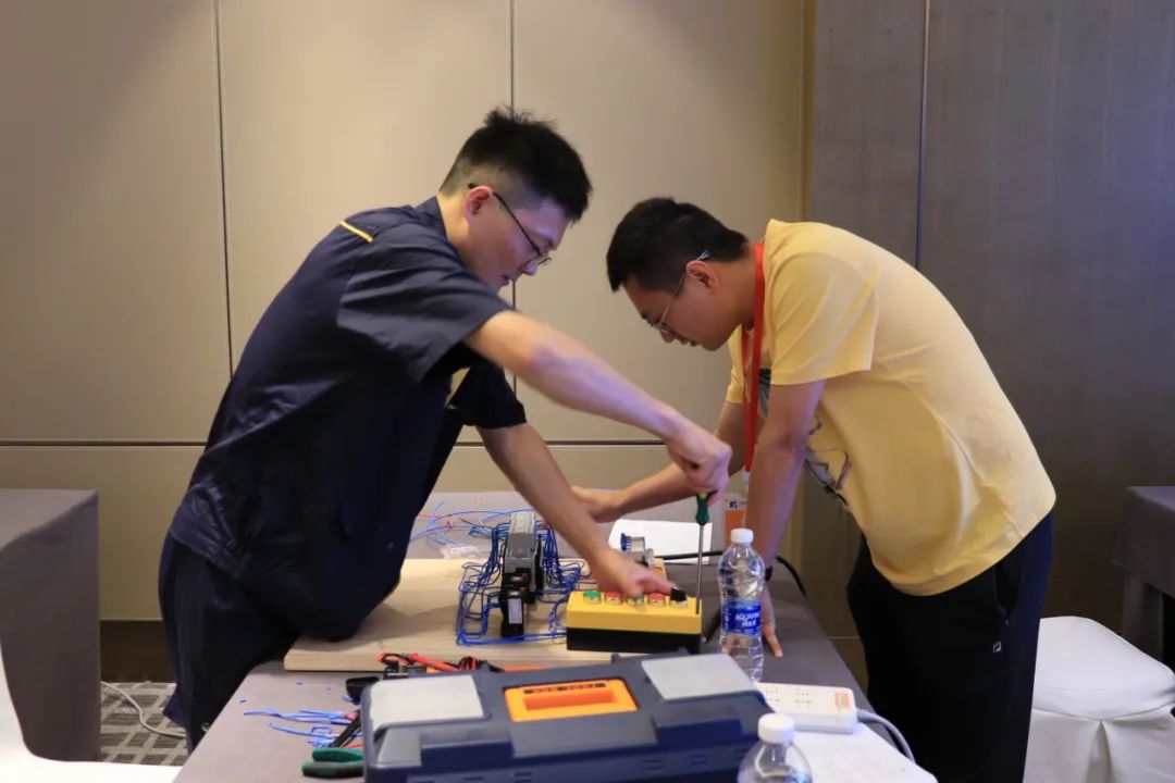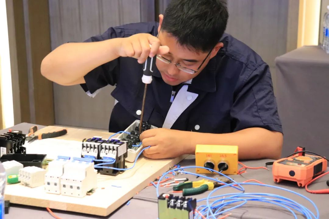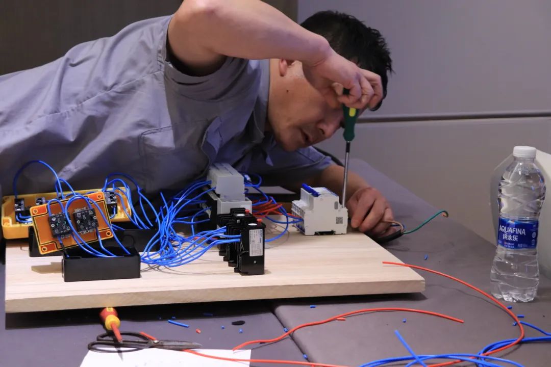 排污泵一用一备控制电路安装和调试综合考验了各参赛队伍对专业知识的掌握程度,及实践操作的精准性、熟练度。线路的排列及走法,看似简单却有着很多讲究,不仅需要娴熟的技术,更需要参赛者们的耐心、细心,安全才会更有保障。