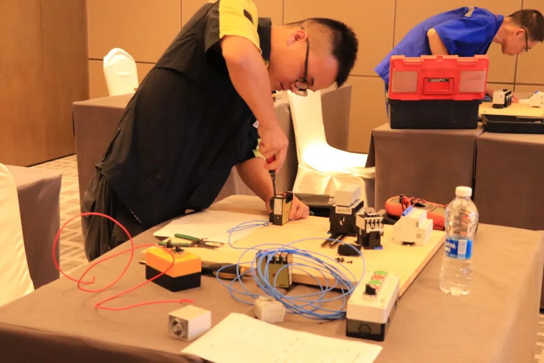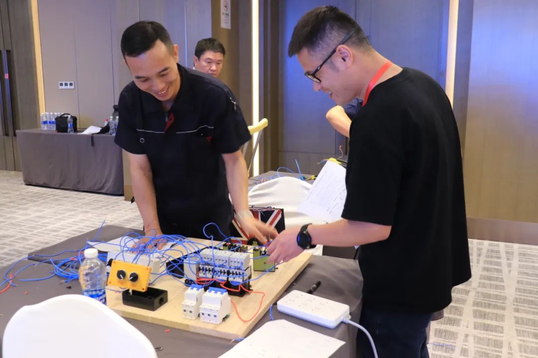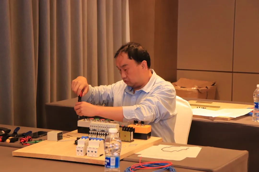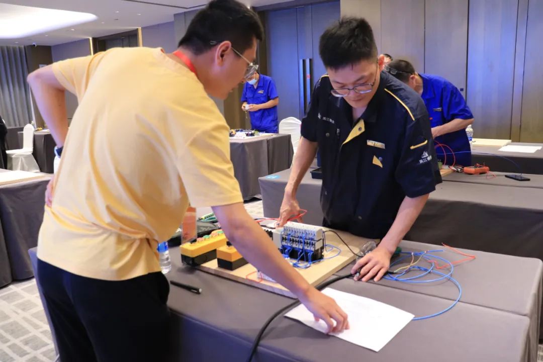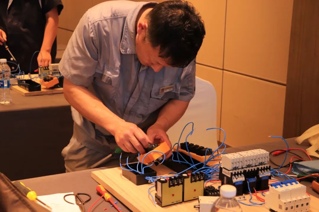 排污泵一用一备控制电路安装和调试综合考验了各参赛队伍对专业知识的掌握程度,及实践操作的精准性、熟练度。线路的排列及走法,看似简单却有着很多讲究,不仅需要娴熟的技术,更需要参赛者们的耐心、细心,安全才会更有保障。