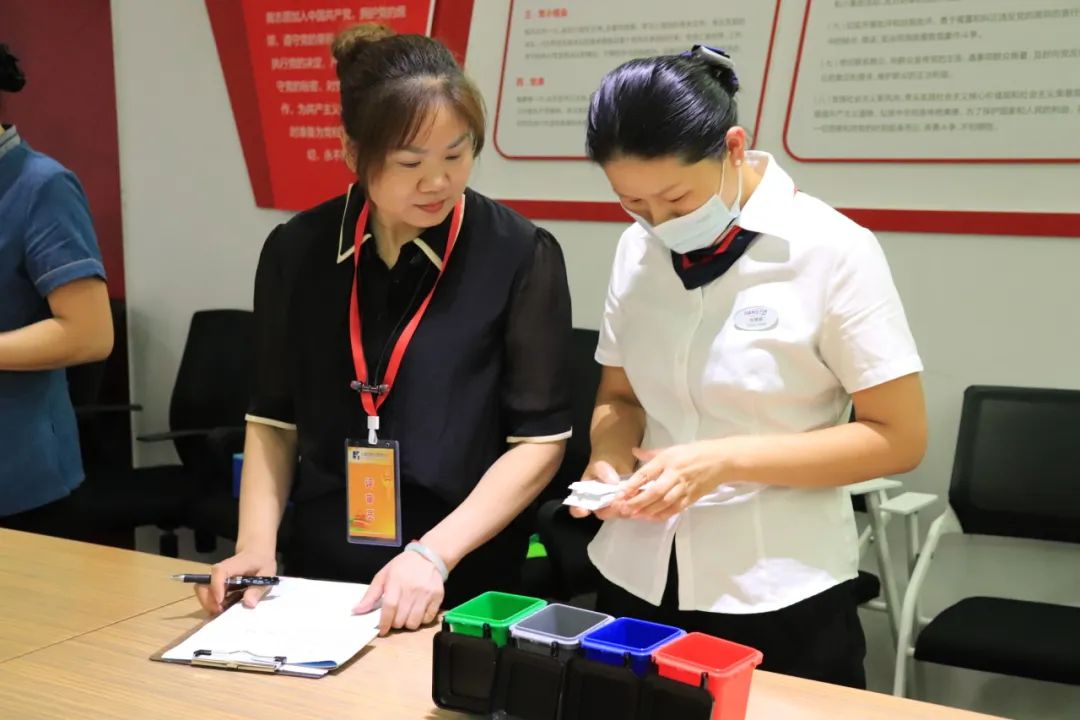 本次比赛分为垃圾分类和现场实操两部分,评委进行现场点评打分。
