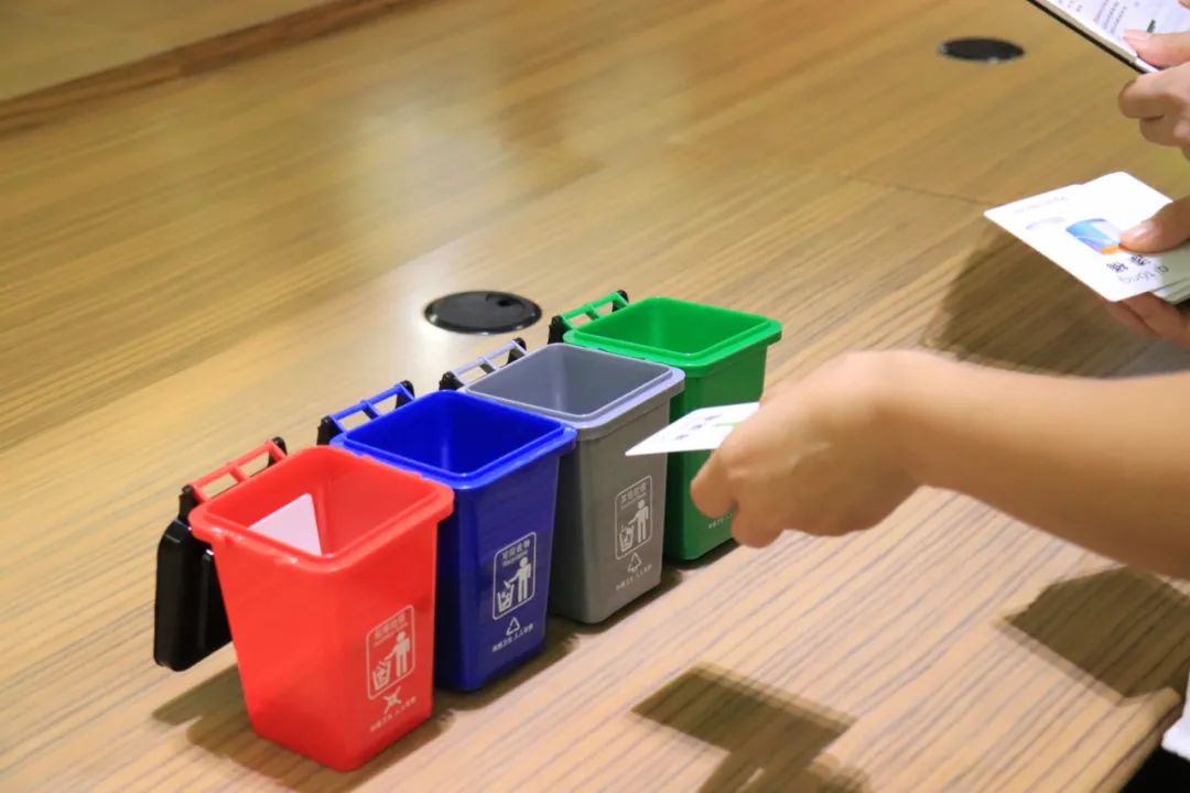 在垃圾分类中,选手们需要面对上百张卡片一一对应垃圾选项,从中辨别其分别属于什么垃圾,并将其掷入相对应的垃圾桶内。