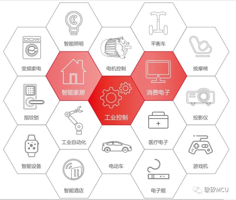敏矽微MCU具备丰富外设、高可靠性、高稳定性等显著特点,广泛应用于各行各业。