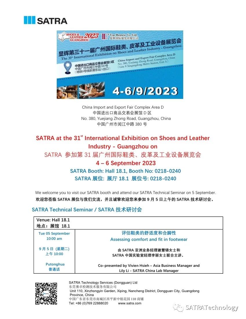 SATRA 参加第31届广州国际鞋类﹑皮革及工业设备展览会