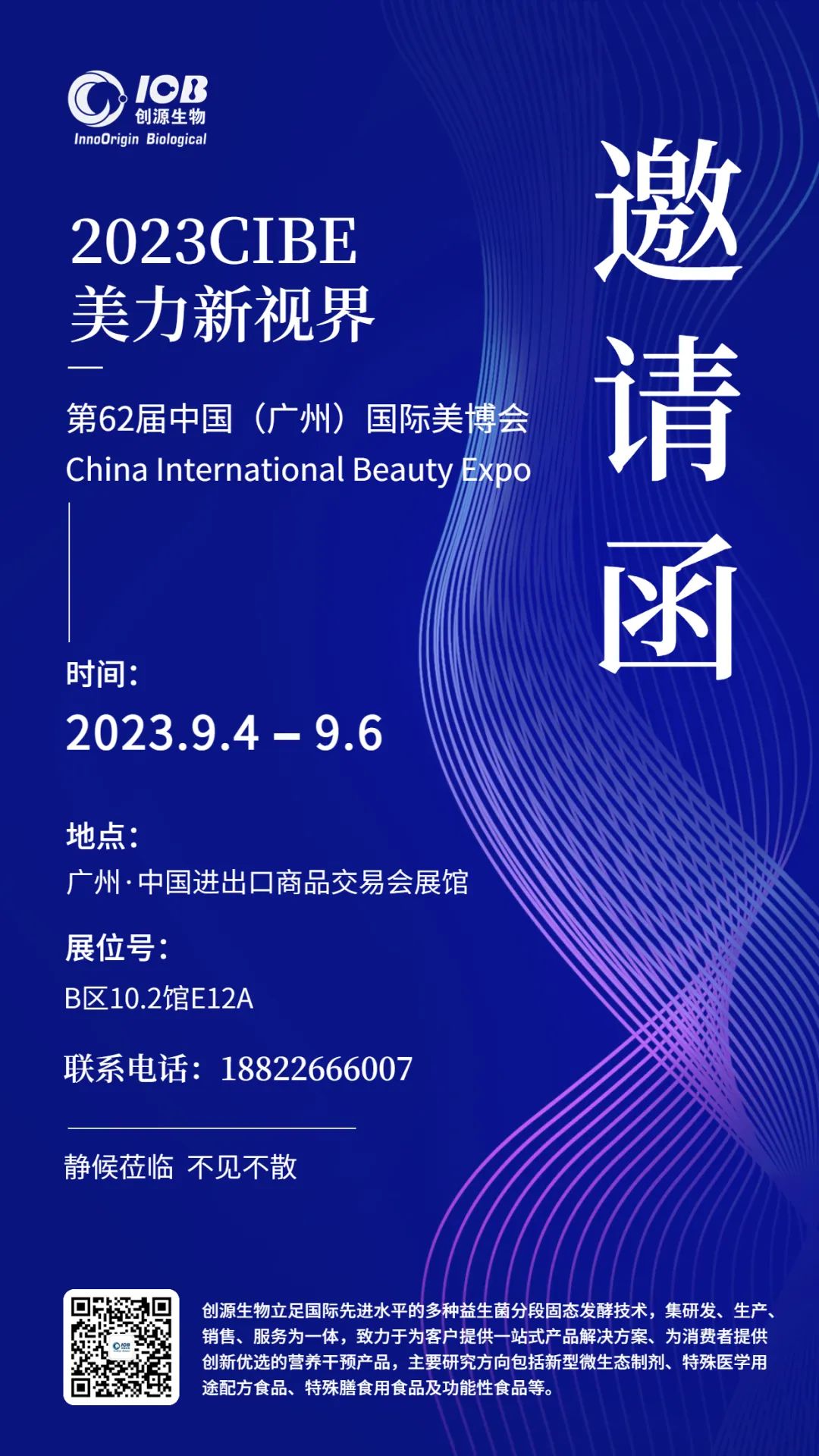2023年9月4日-6日,第62届中国(广州)国际美博会将于广州·中国进出口商品交易会展馆隆重举行。届时,天津创源生物技术有限公司将携旗下明星系列产品首次闪耀亮相CIBE,以多维度方式展现品牌形象,力争为与会者呈现一场别开生面的美业盛宴。我们愿与您共同探讨美业热门话题,为您带来美业新体验、新享受,诚邀您莅临【B区10.2馆E12A】参观交流,感受创源生物品牌专业实力与活力。