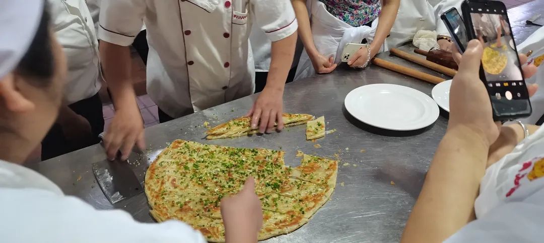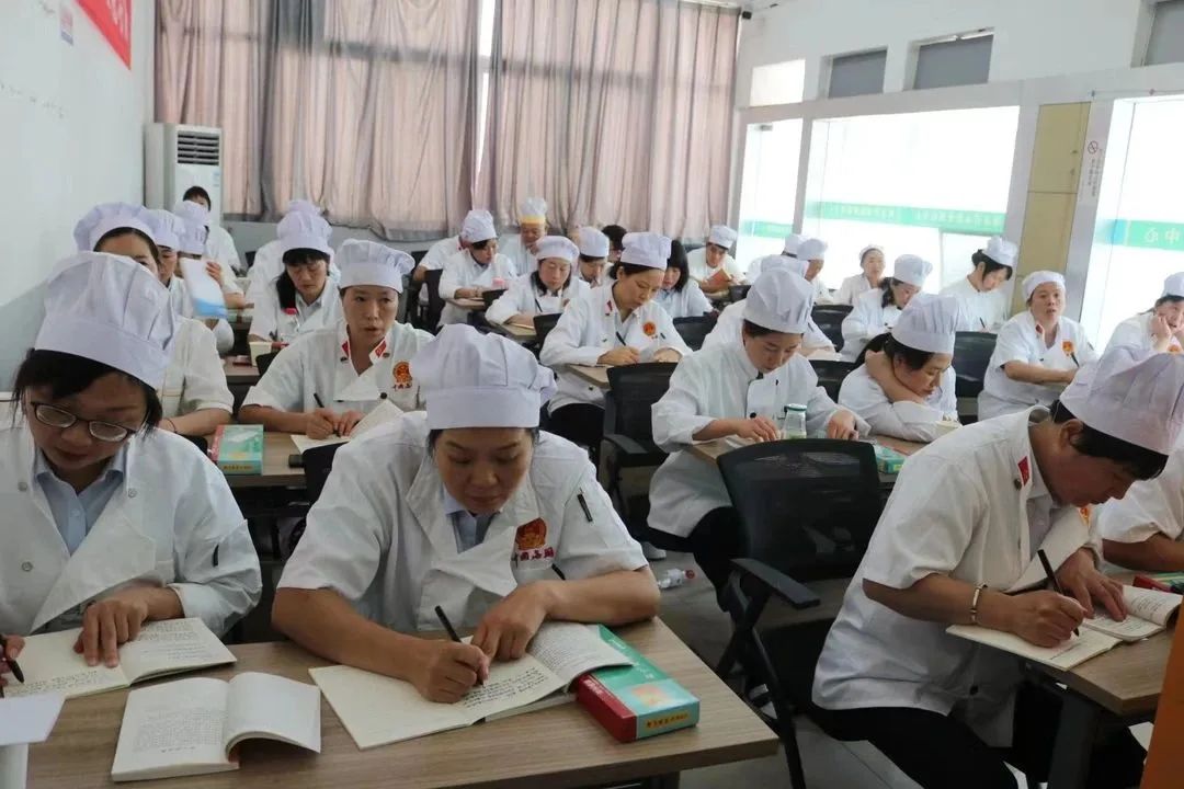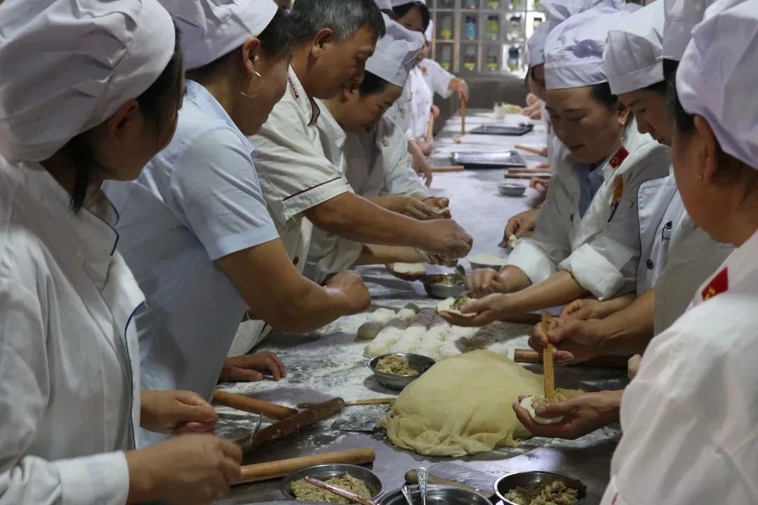 培训现场,十堰烹饪泰斗、烹饪高级技师时长春讲解了特色面点制作手法、发面技巧和注意事项,精通鄂菜、川菜及十堰地方菜的高级烹调师曹培军传授了竹溪蒸盆、红烧翘嘴白等地方特色菜的烹饪技巧。老师耐心细致讲解、示范操作,学员聚精会神、认真学习。