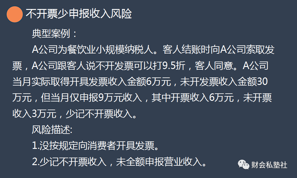 不开票少申报收入风险