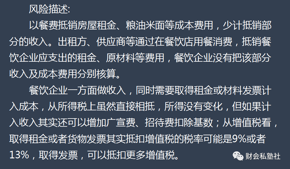 以餐费抵顶成本费用风险