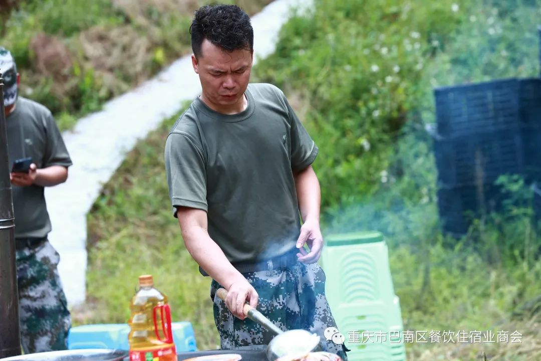第二阶段为野战炊事训练。由于训练条件有限,民兵们动手挖土搭建野战炊事灶,一系列准备工作有条不紊地进行,队员分工明确,洗菜切菜,清理炊具,翻炒烹煮等操作有序展开,展现了队员良好的精神风貌,培养了过硬的技能和协同配合意识。