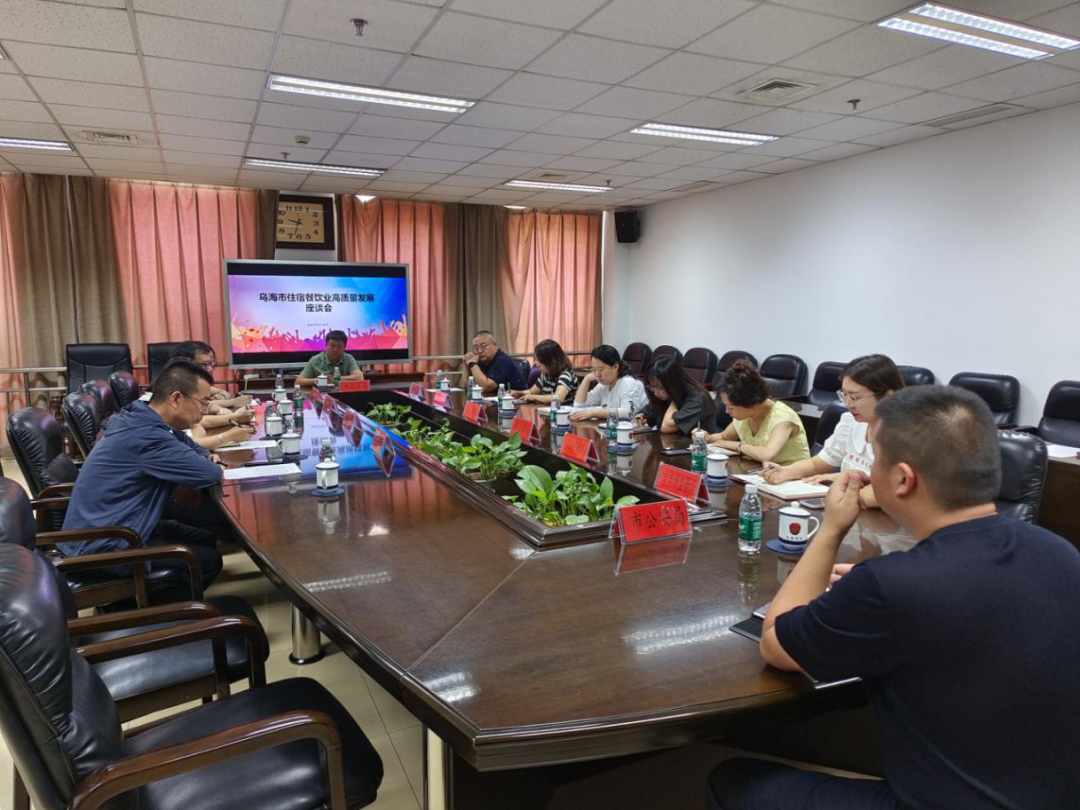 为进一步提升乌海市住宿餐饮业服务质量,发挥住宿餐饮业在促进消费、拉动经济增长、提升城市形象等方面的积极作用,引导企业以顾客满意度为导向,提升住宿餐饮精细化管理水平,2023年8月30日上午,市商务局组织召开乌海市住宿餐饮业高质量发展座谈会,会议由市商务局副局长李俊晶主持,特别邀请到原苏州市贸促会会长、商务局副局长王志明一行参会,市发改委、工信局、科技局、区域经济合作局、财政局、市场监管局、公安局、卫健委、文旅局等相关单位人员参加会议。