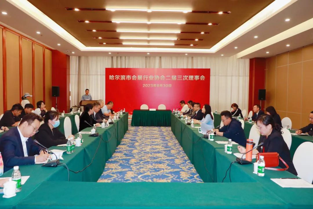 2023年8月30日下午,哈尔滨市会展行业协会在会展体育中心华旗饭店召开二届三次理事会。哈尔市贸促会副会长林枫、哈尔滨市会展行业协会会长孟凡胜出席并讲话。