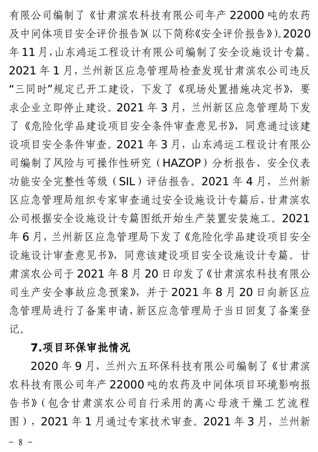 该企业位于兰州新区秦川精细化工园区,注册于2020年8月5日,主要从事农药中间体及农药产品的生产、经营,现处于试生产阶段。