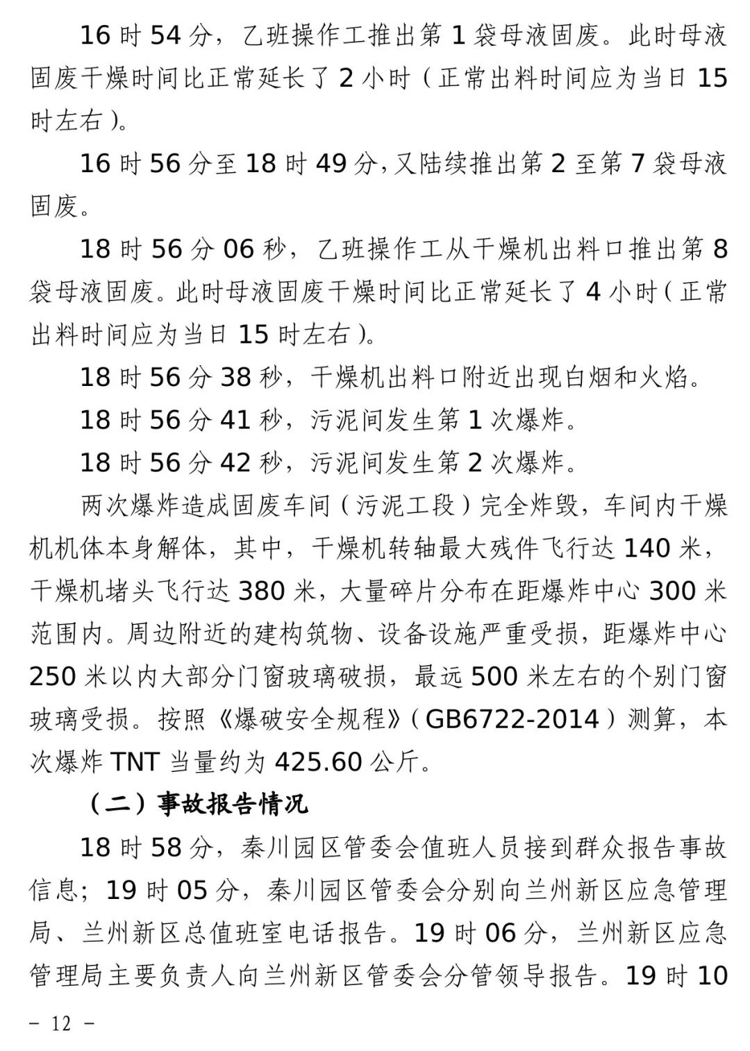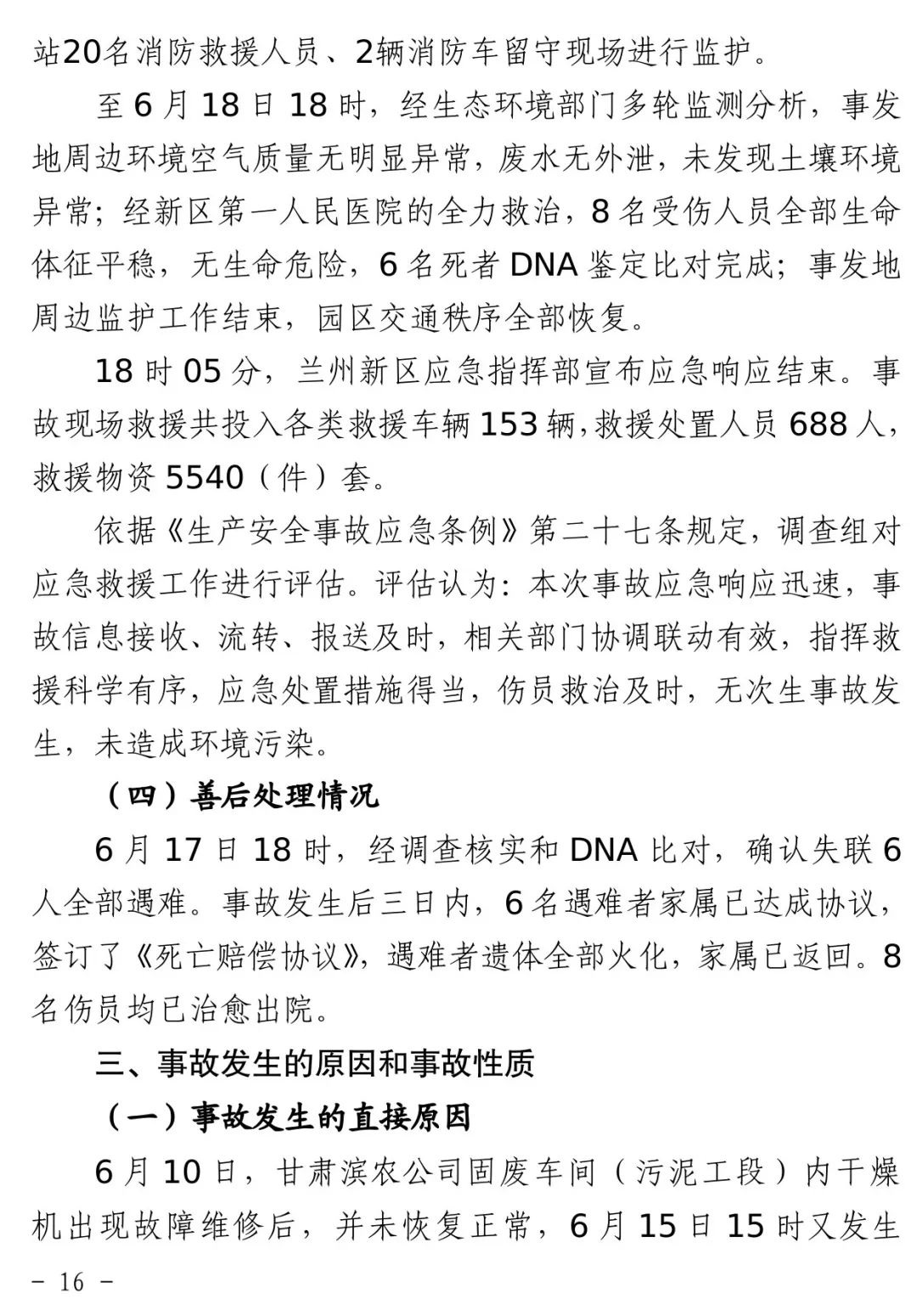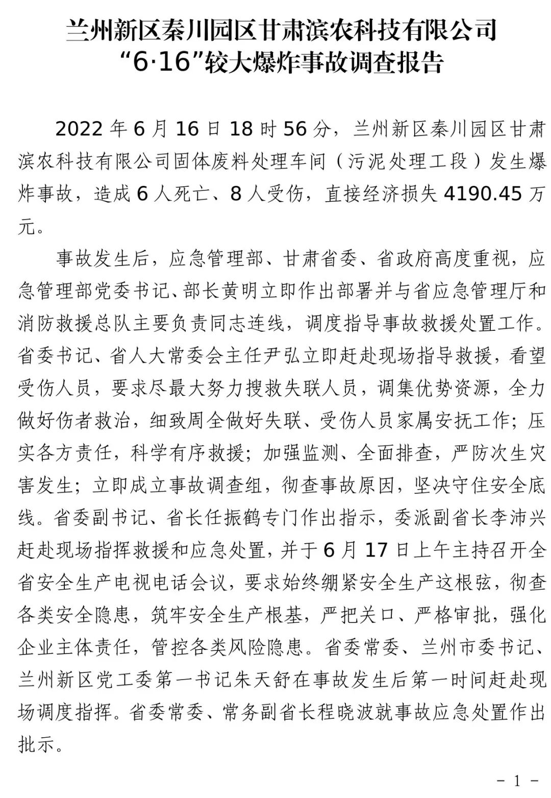 6月16日18时58分,位于兰州新区秦川精细化工园区的甘肃滨农科技有限公司污泥干燥车间发生爆炸事故,造成8人受伤、6名失联人员不幸遇难!