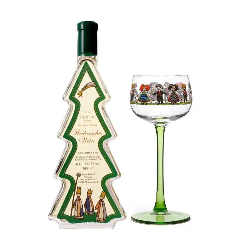 德国某酒庄会在圣诞节前后,限量生产一批以圣诞树为造型的葡萄酒瓶,作为节日限定款售卖。