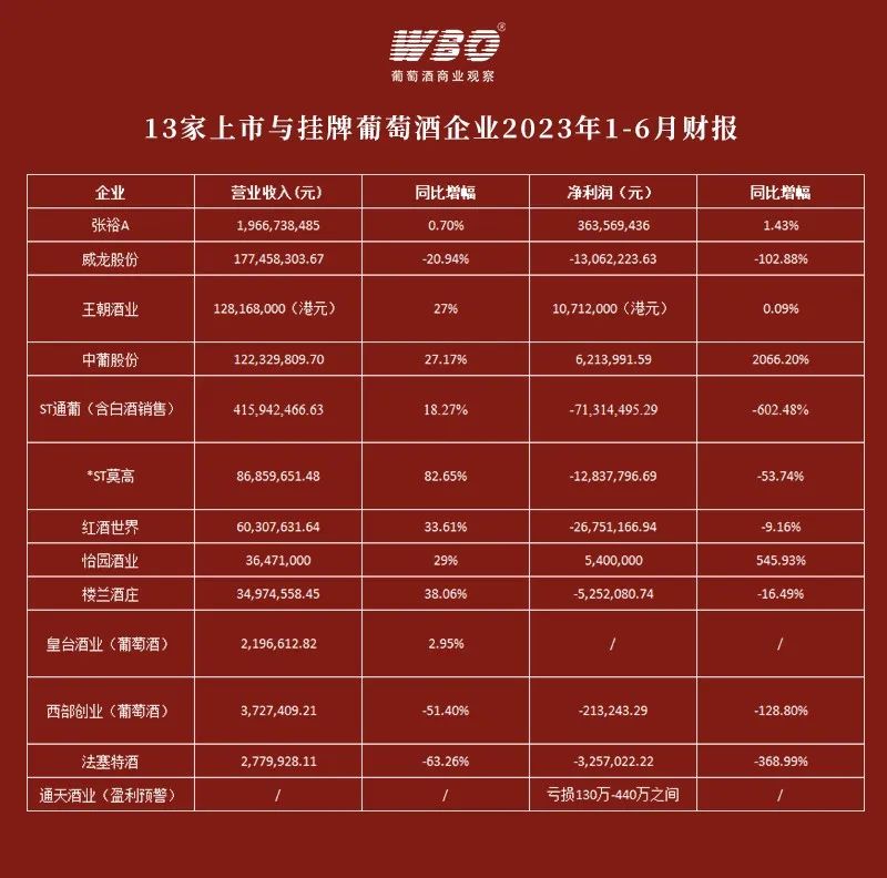 今年1-6月,这4家葡萄酒上市与挂牌企业数据亮眼,收入与净利润的正增长。
